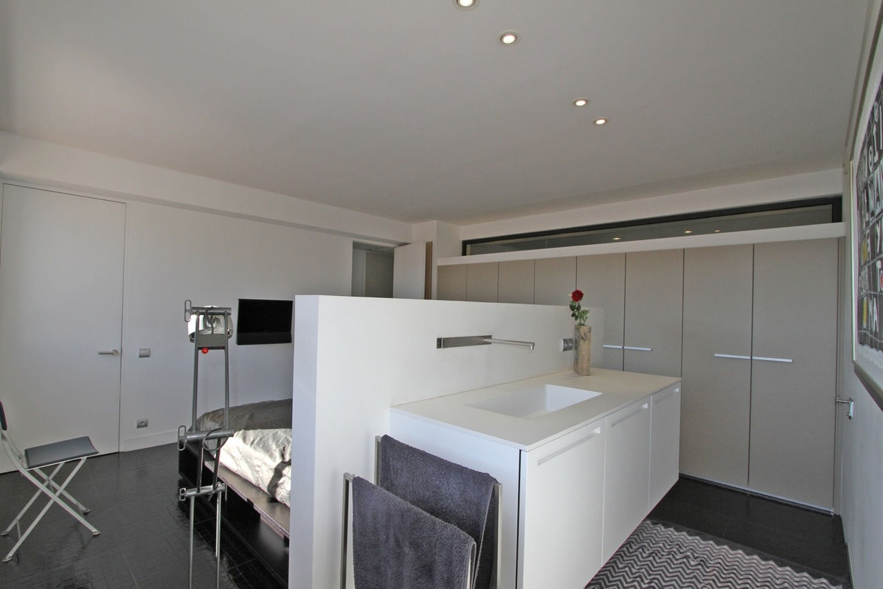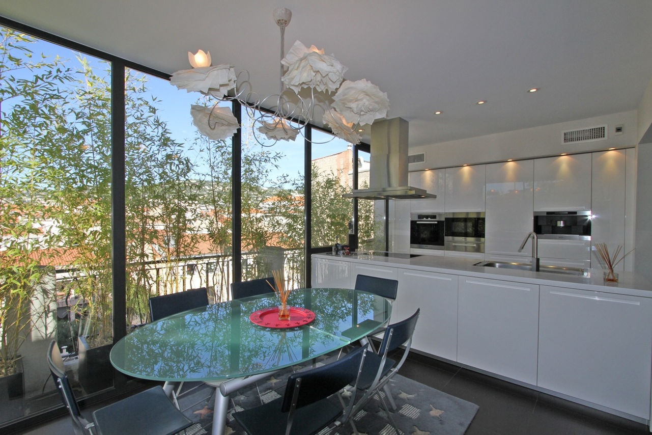 Rare au dernier étage très agréable immeuble de la rue d'Antibes, à 2 minutes de La Croisette et de la prestigieuse Boutique, Grand appartement d'une décoration raffinée et d'un service de qualité, bénéficiant de deux très grandes terrasses.