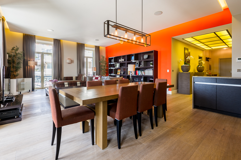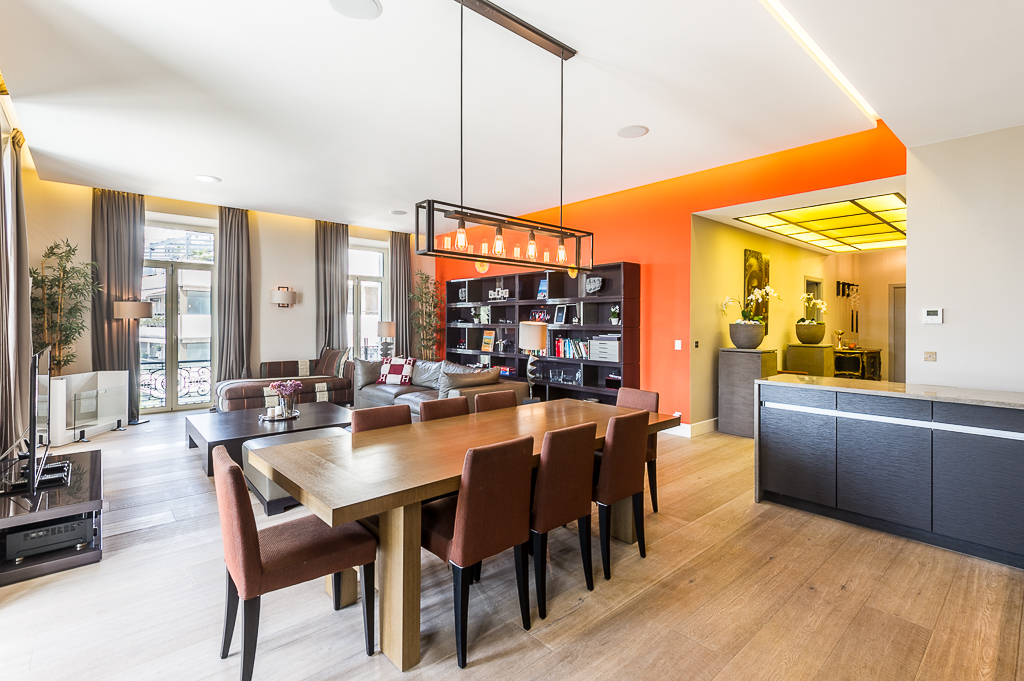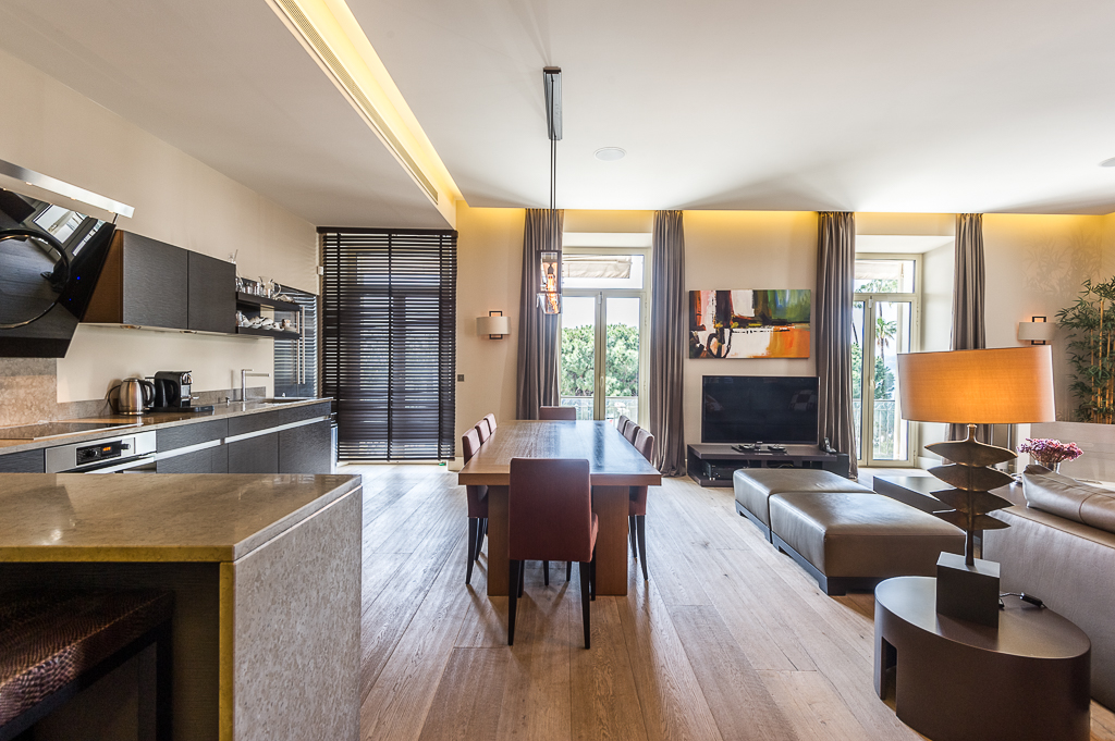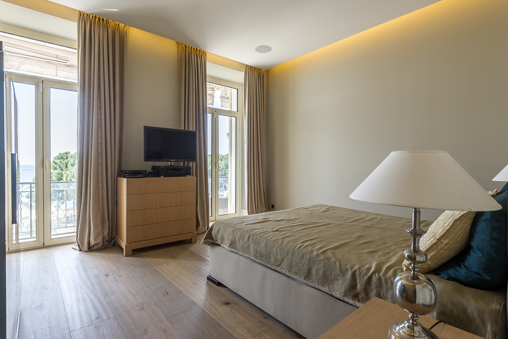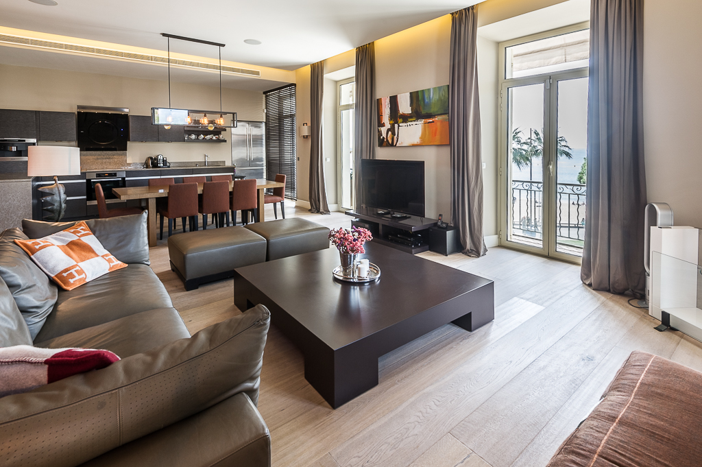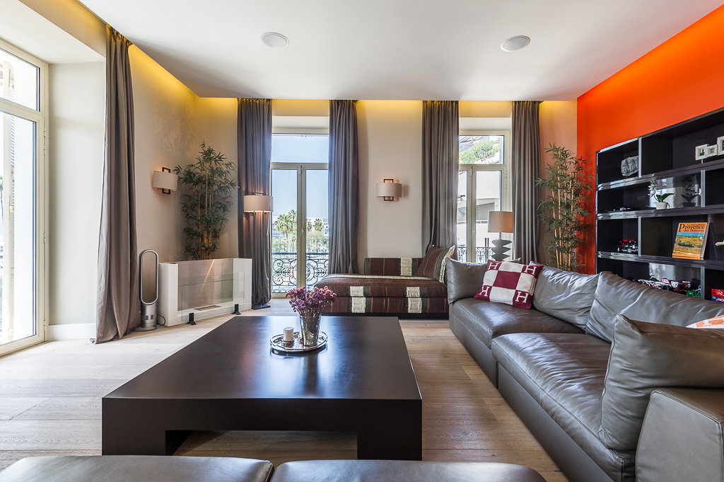 Les appartements design disposent de hauts plafonds (3 m), mis en place des matériaux de qualité coûteux, avec les appareils intégrés de la dernière génération. L'appartement dispose d'une superbe vue panoramique sur la mer et de la Promenade de la Croisette. L'appartement offre luxe et confort, entièrement meublé avec des meubles sur mesure à partir des meilleurs spécialistes.