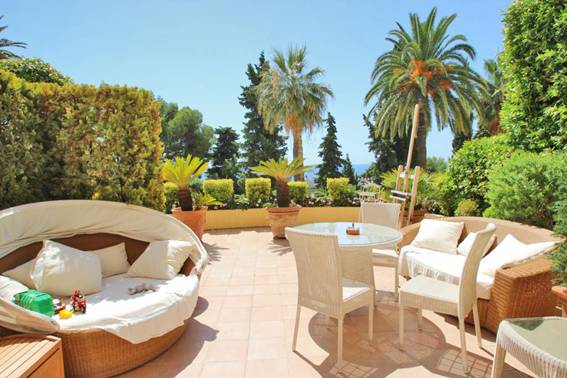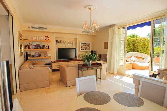- Grand salon avec coin repas et accès à la terrasse (37 m2) avec vue sur la mer