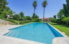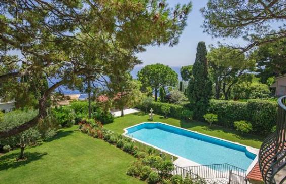 La villa dispose de 10 chambres, grandes terrasses, beau terrain avec vue sur mer, piscine dans le jardin, pool house, le spa avec sauna, billard, salle de cinéma.