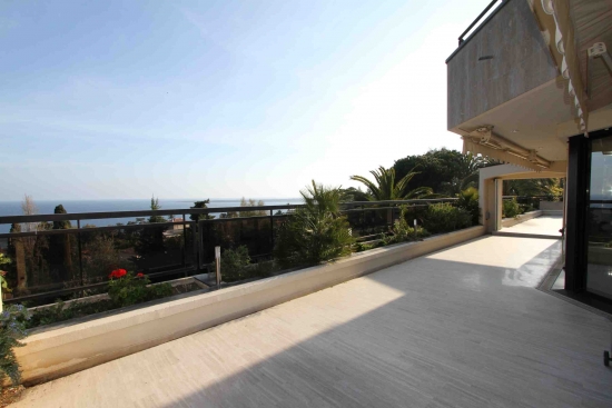 Cannes, Eden. Dans une prestigieuse communauté fermée avec parc, piscine et tennis il y a un penthouse unique de 250 m2. Terrasse de 200 m2 avec vue panoramique sur la mer, avec éclairage et arrosage automatique pour les plantes.