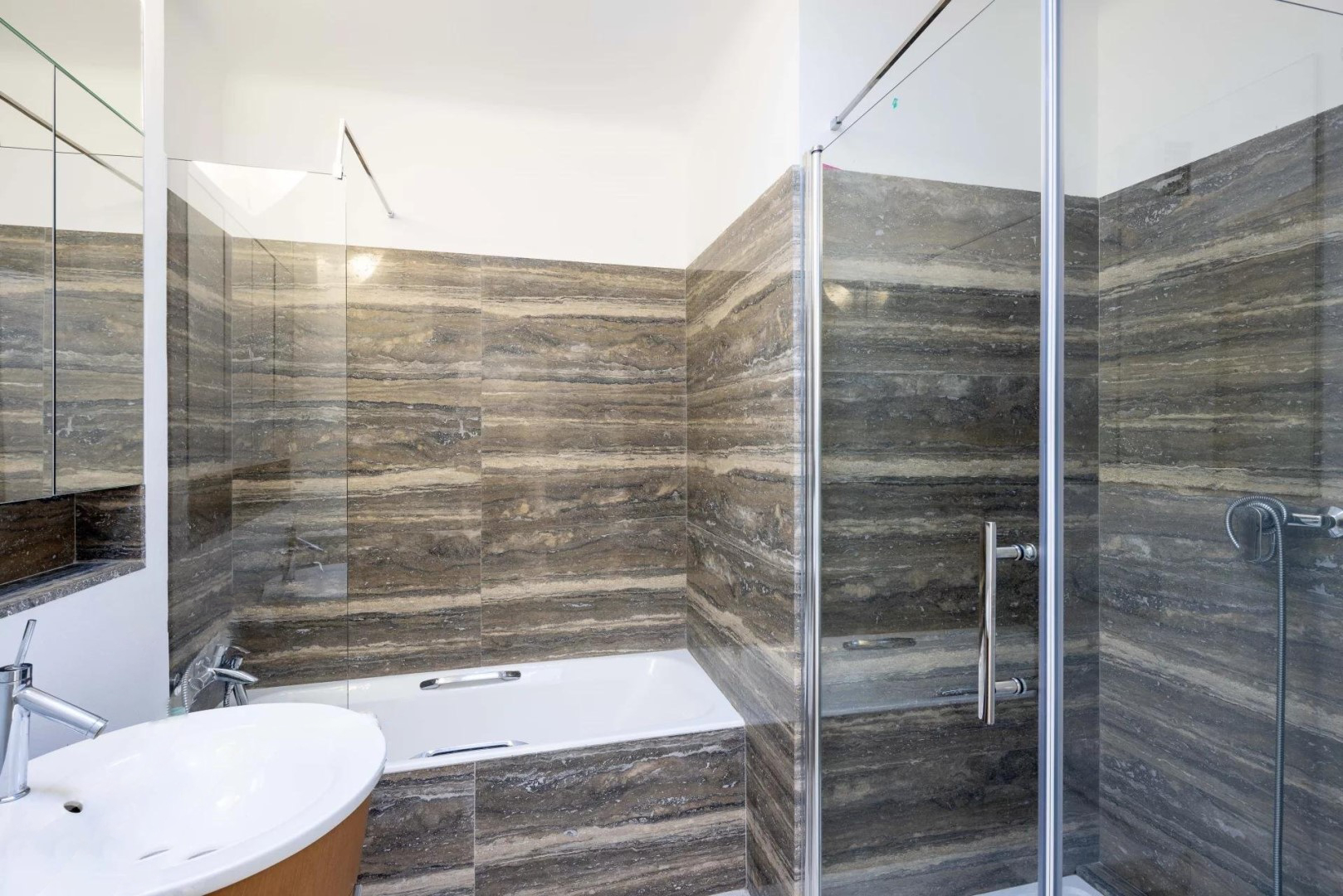 Au dernier étage d'une résidence fermée bien entretenue, un appartement soigneusement rénové avec une profonde terrasse et un balcon avec double exposition soleil.