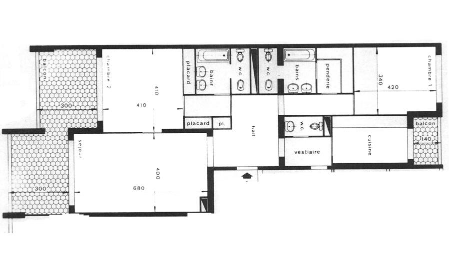 Il comprend une belle entrée, dressing, grand séjour ouvrant naturellement sur une terrasse donnant sur les jardins du Casino, cuisine entièrement équipée avec entrée de service et loggia, chambre avant avec placards et salle de bain, côté montagne, 2ème chambre. avec dressing et salle de bain ; toilettes invités.