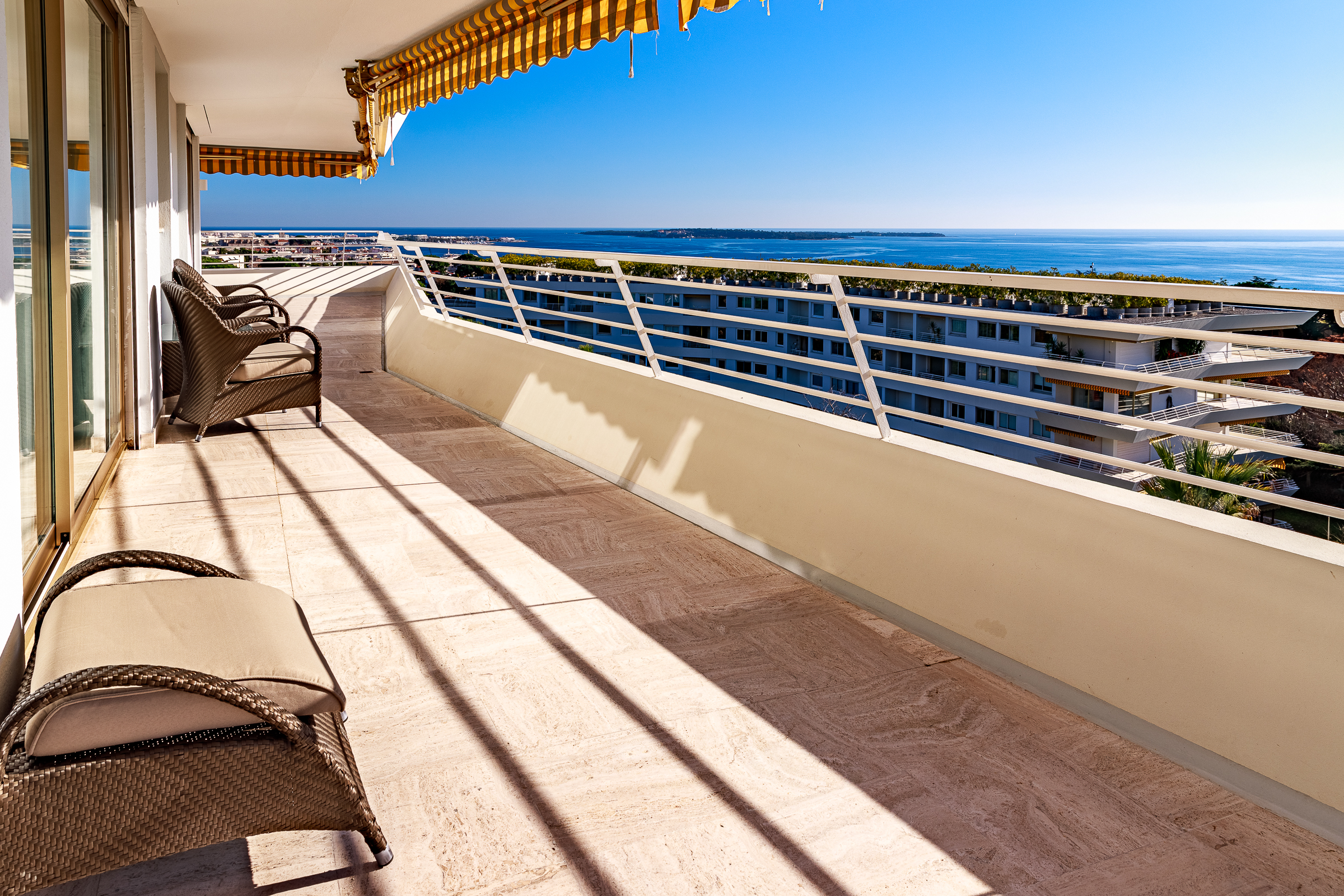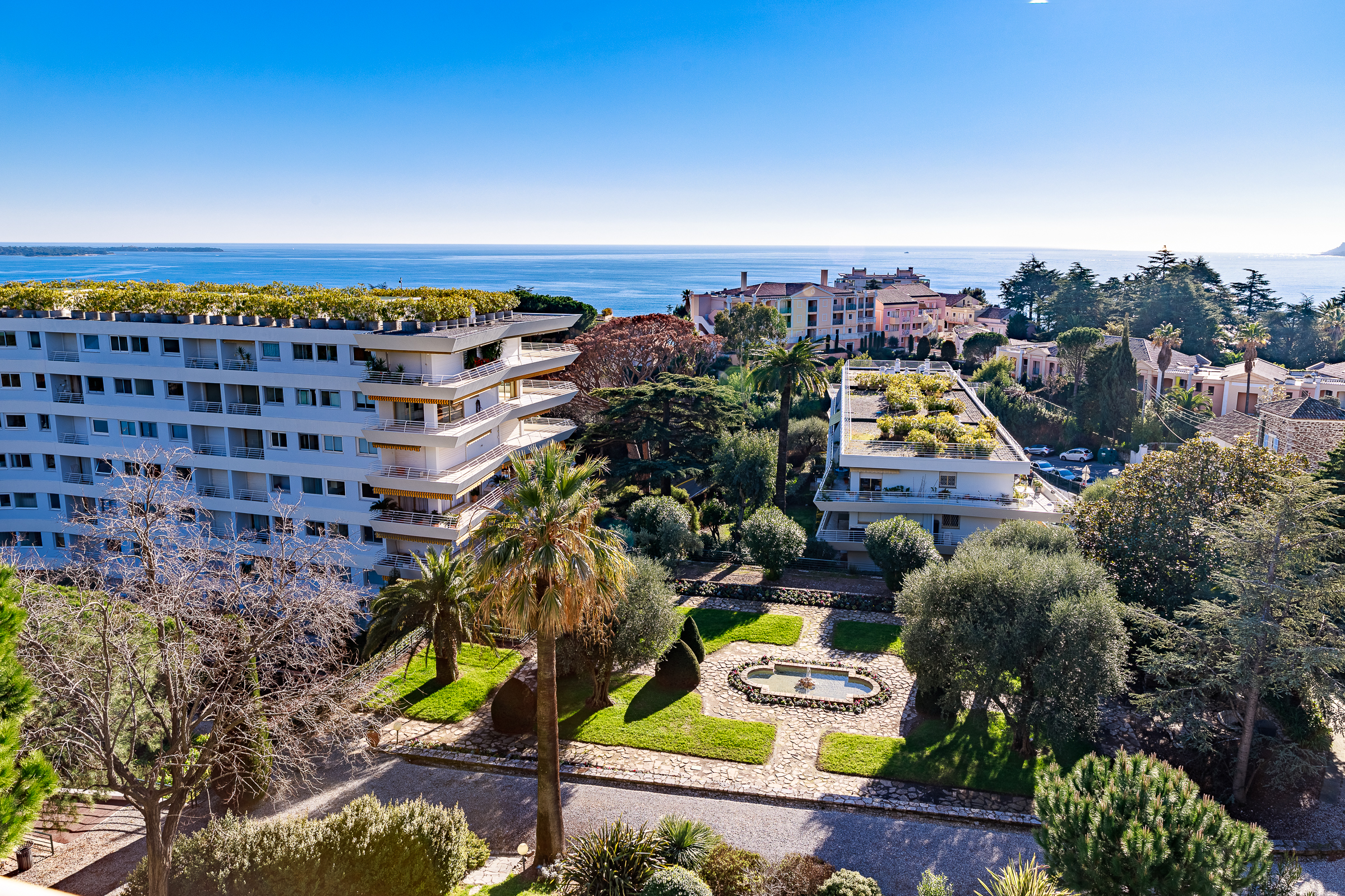 Dans la célèbre résidence Domaine de Pierre Longue, située dans le quartier boisé d'élite de la Croix de Gardes, un magnifique appartement de 5 pièces au 4ème étage d'une superficie d'environ 165 m2 avec une grande terrasse avec vue mer panoramique.