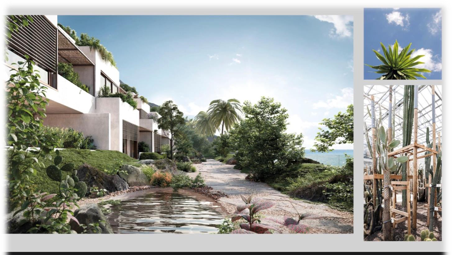 Le projet immobilier offrira des espaces ouverts et lumineux pour un ensemble moderne et esthétique de style "villa méditerranéenne". L'accent sera mis sur les matériaux nobles comme la pierre naturelle et le bois.