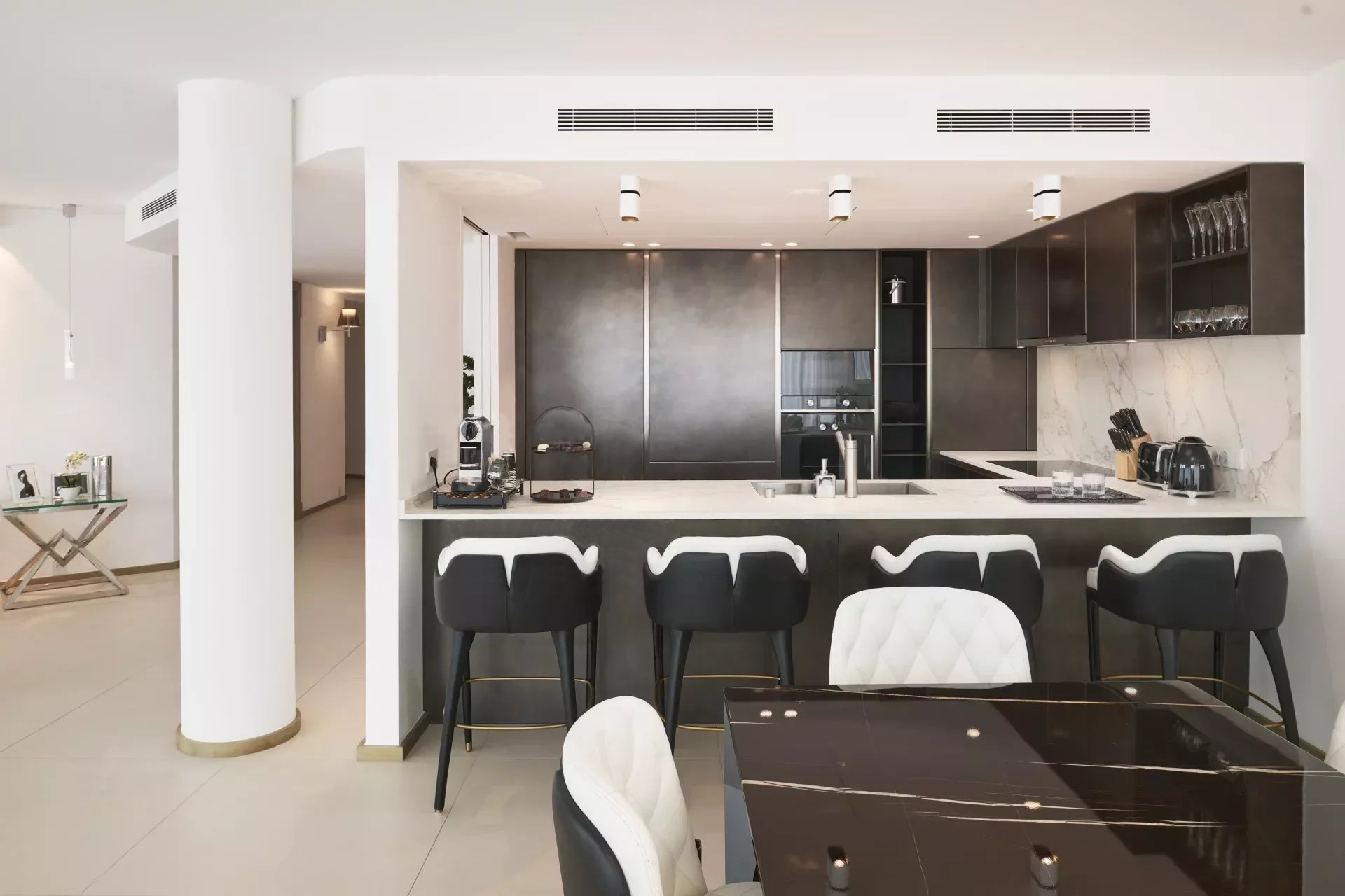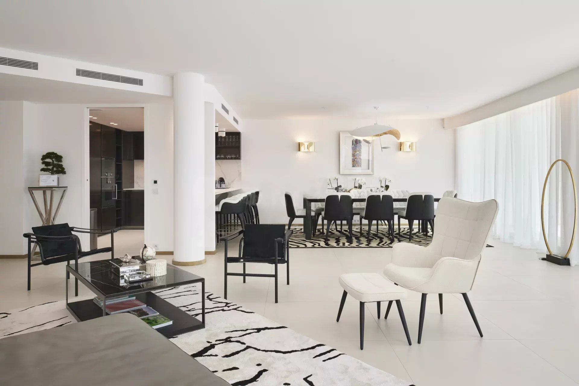Il dispose d'un spacieux séjour de plus de 60 m² avec accès à une terrasse de plus de 24 m² et d'une cuisine Boffi entièrement équipée en électroménager Gagguenau. Il dispose de 4 chambres avec salles de bains ou douches en suite et de nombreux rangements.
