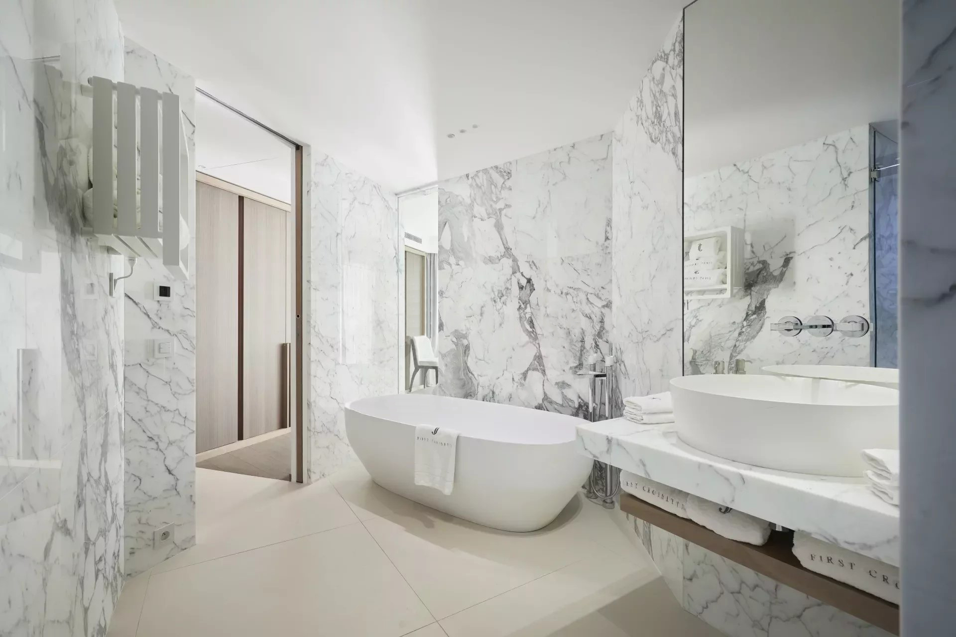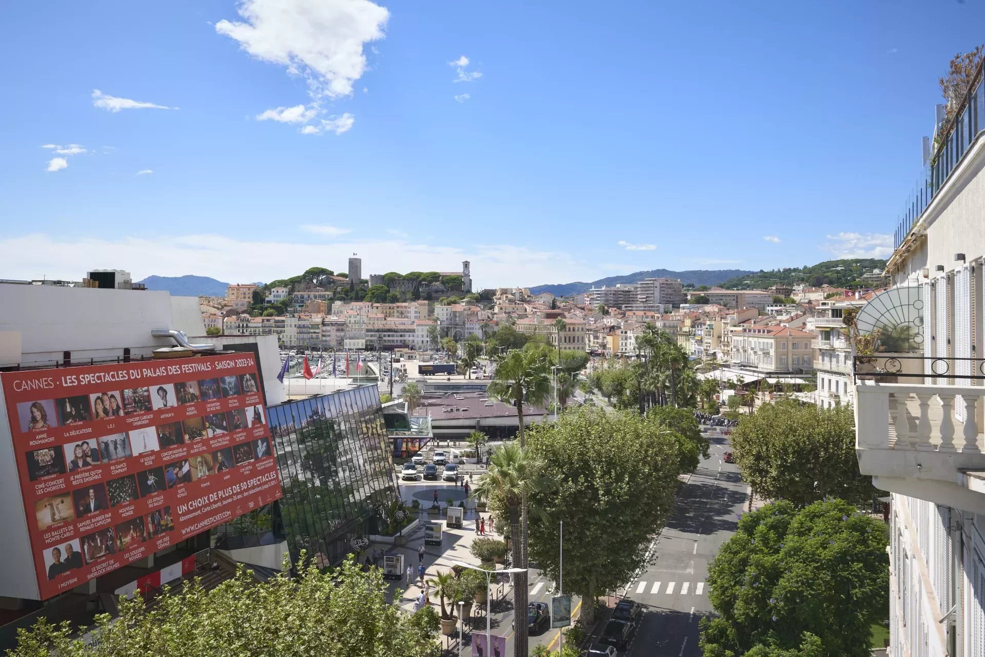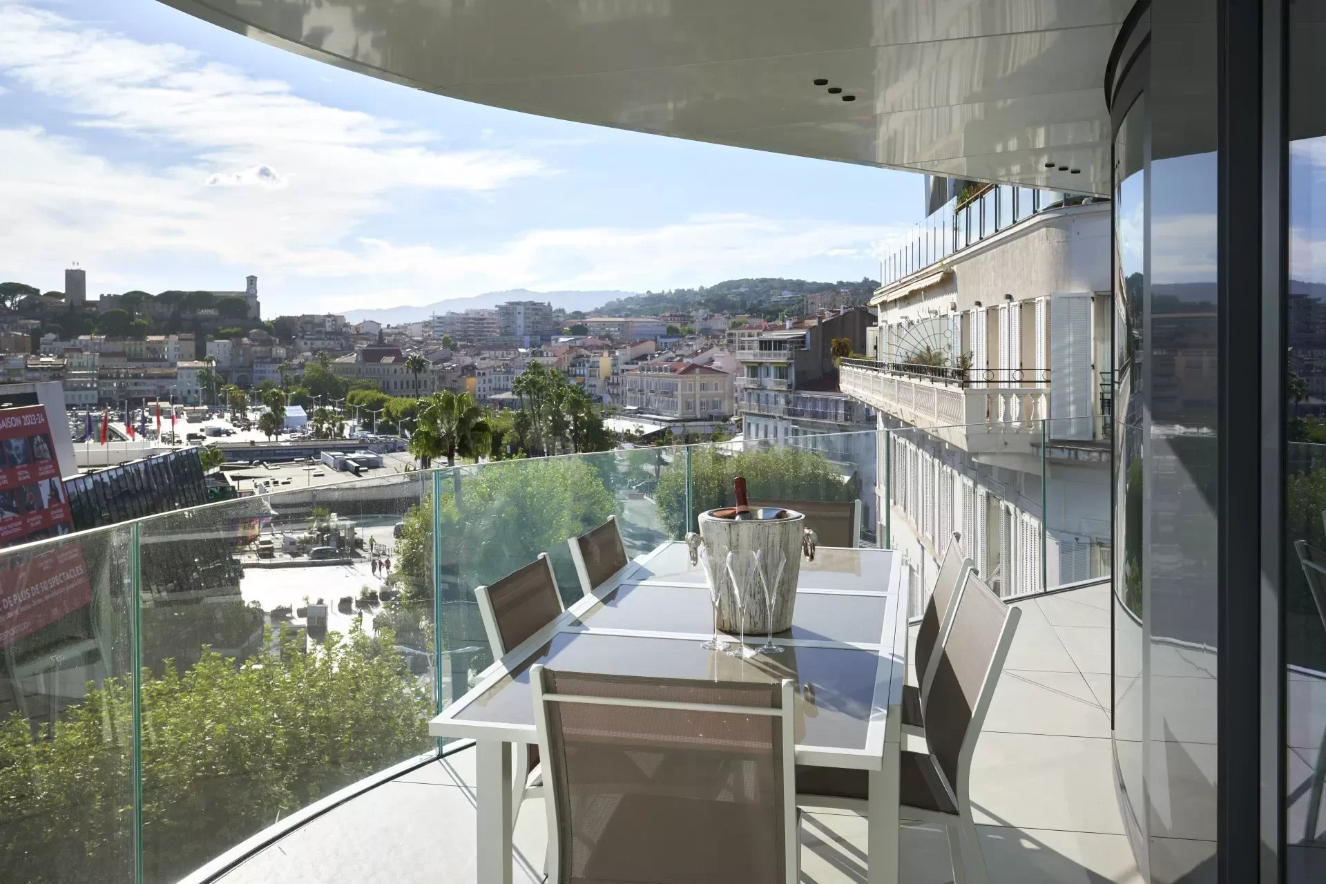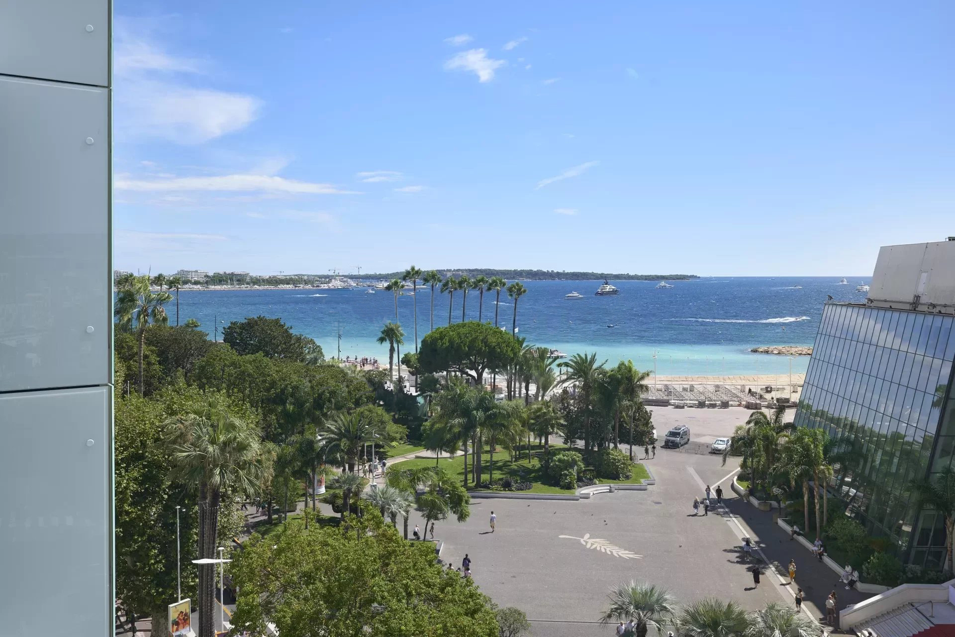 Cet appartement d'exception aux courbes gracieuses est idéalement situé sur la Croisette, avec vue sur la mer Méditerranée, le Palais des Festivals et le Suquet.