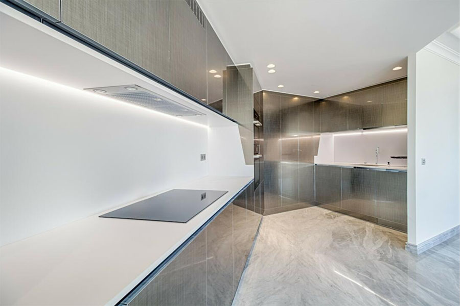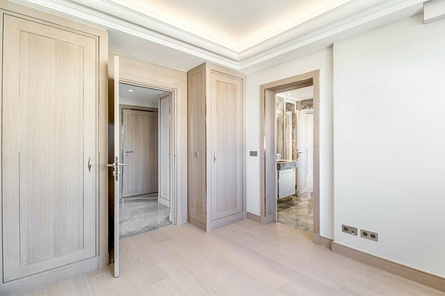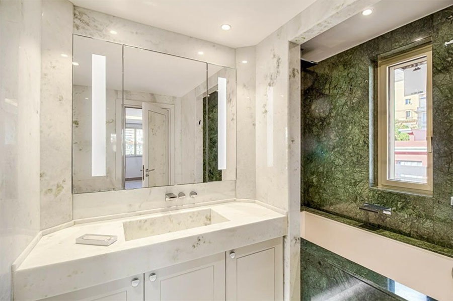 Résidence de luxe moderne avec concierge 24h/24 à proximité du centre de Monaco. L'appartement est situé au dernier étage et est ouvert des deux côtés. Il dispose d'un excellent éclairage, rehaussé par des sols en marbre et des boiseries claires.