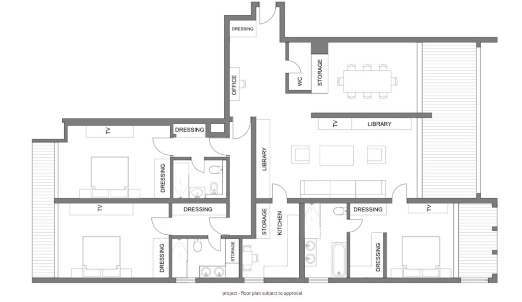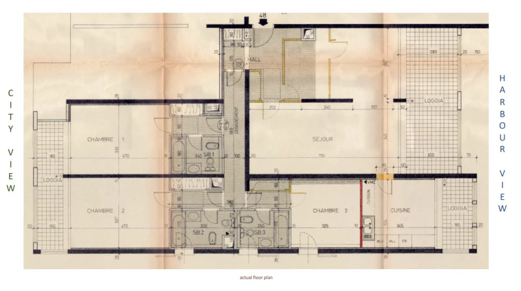 L'appartement d'une superficie totale de 195 m2 se compose d'un hall d'entrée, d'un séjour lumineux, d'une cuisine, d'un bureau et de trois belles chambres avec salles de bains.