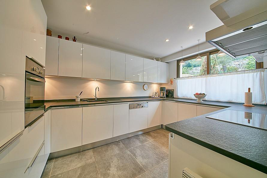 L'appartement de 100 m2 comprend 2 chambres, 2 salles de bain, une cuisine entièrement équipée et une grande terrasse avec vue panoramique sur la mer.