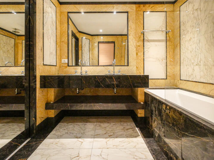 Ce bel appartement de 3 chambres est en parfait état. Il bénéficie de finitions de grande qualité, dont du marbre dans les salles de bains, et de grands volumes. Son emplacement en face du bâtiment offre une belle vue sur la mer et la ville.
