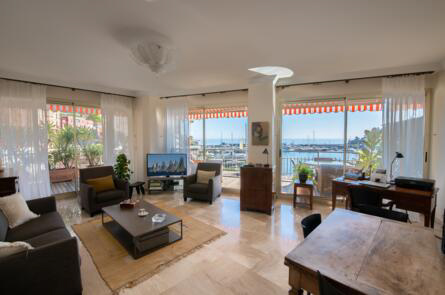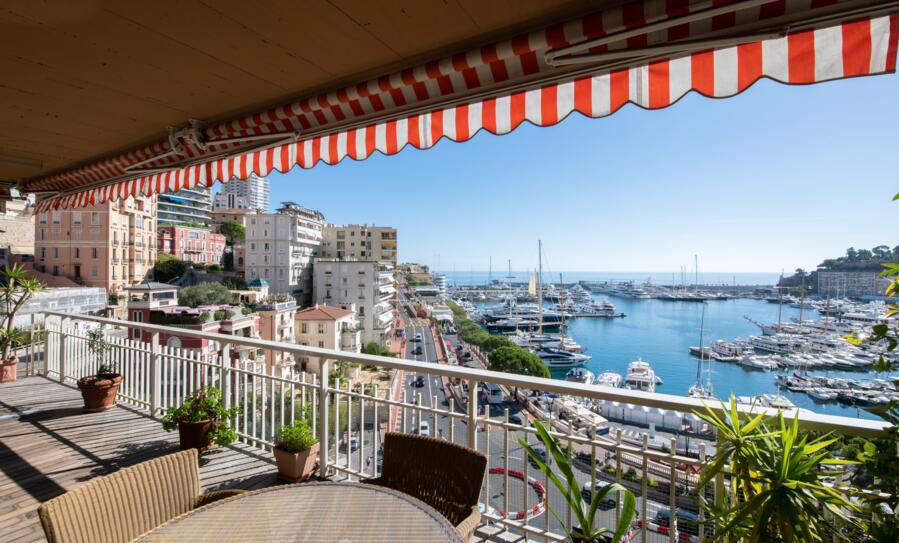 Cet appartement d'angle de 3 pièces présente une superficie de 214,10 m². bénéficie de grandes terrasses et de magnifiques vues panoramiques sur le port, la mer, le Rocher de Monaco et le circuit du Grand Prix de Formule 1.