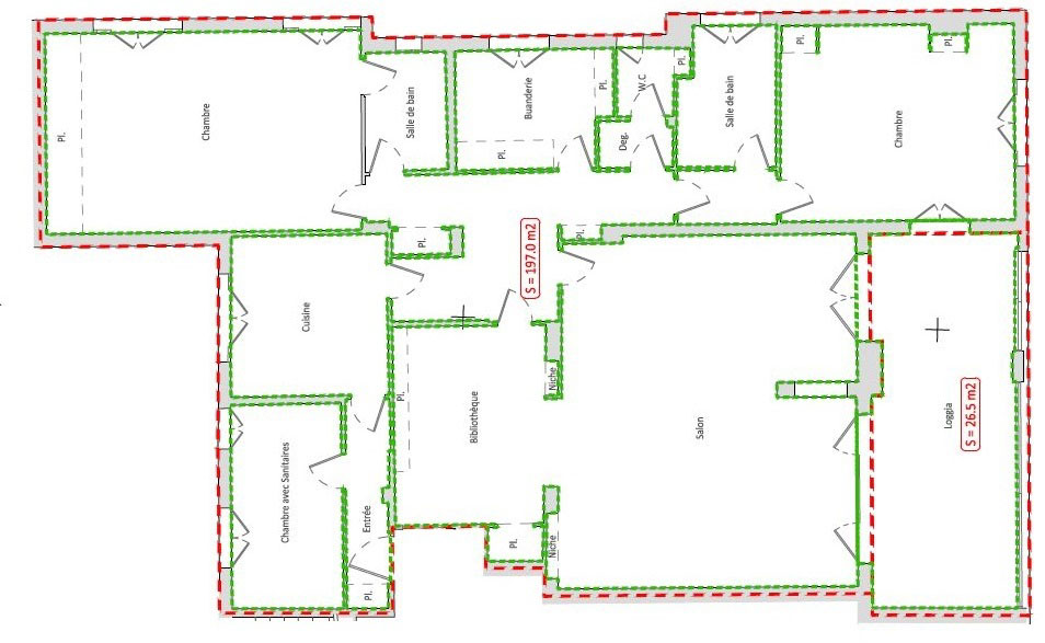 Cet appartement comprend un hall d'entrée ouvert sur un spacieux double séjour avec accès à une loggia, une cuisine séparée, un coin bibliothèque, deux grandes chambres, une salle de bains, une salle de douche, une troisième chambre avec salle de bains en suite, un WC invités. et une buanderie.