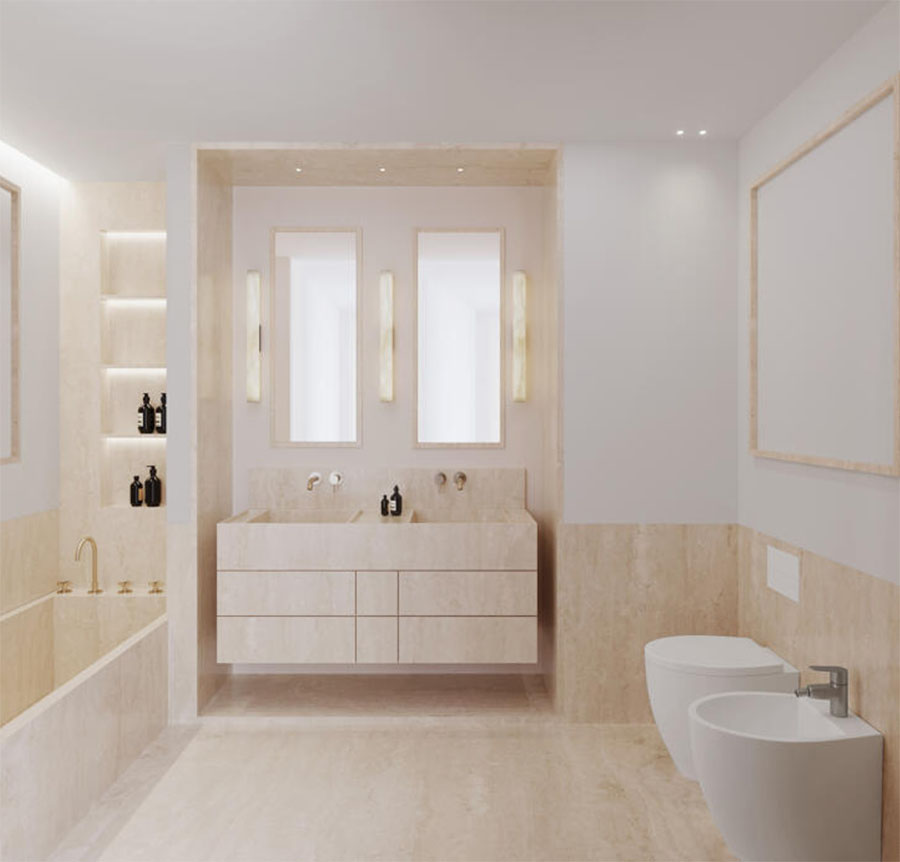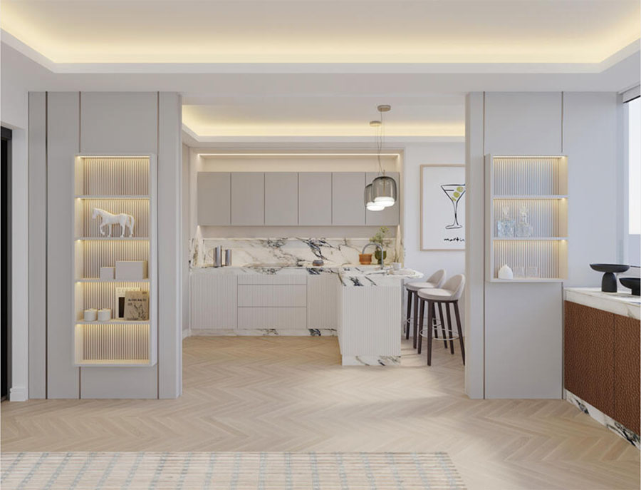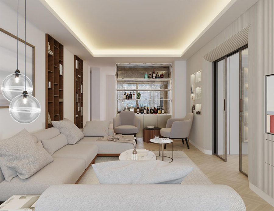 L'appartement a été rénové avec des matériaux de qualité et dans un style moderne dans des couleurs neutres claires.