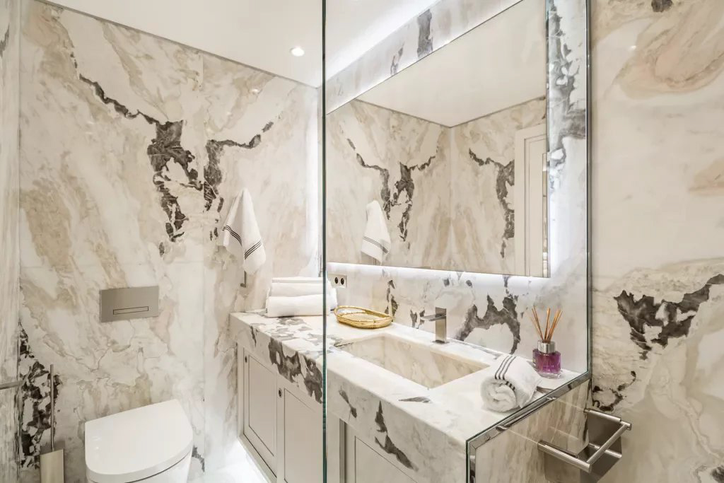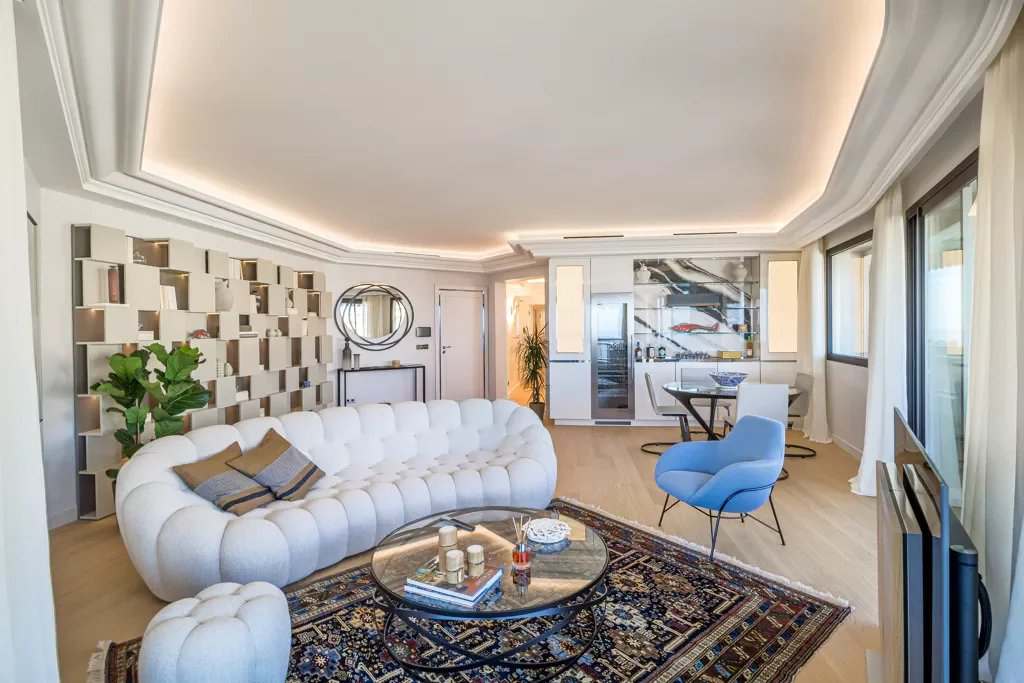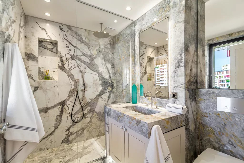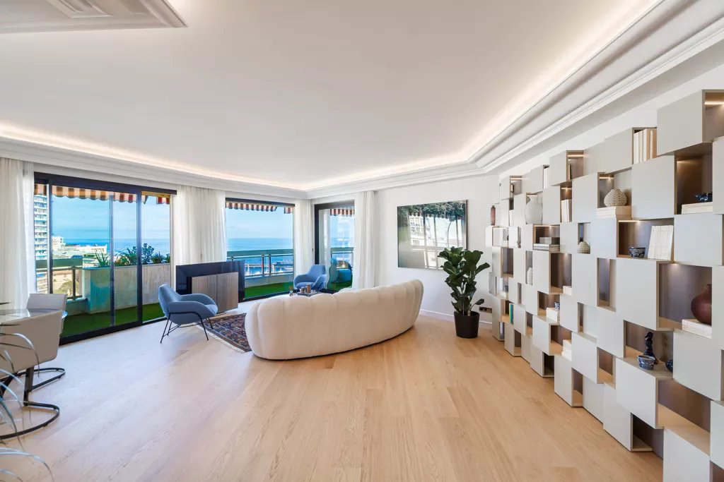 Situé dans une résidence luxueuse avec vue panoramique sur la mer, le port et le Rocher, ce magnifique et lumineux appartement de 4 chambres a été entièrement rénové avec des matériaux rares de qualité (marbre italien dans les salles de bains, parquet en chêne massif et boiseries sur mesure dans la chambre).
