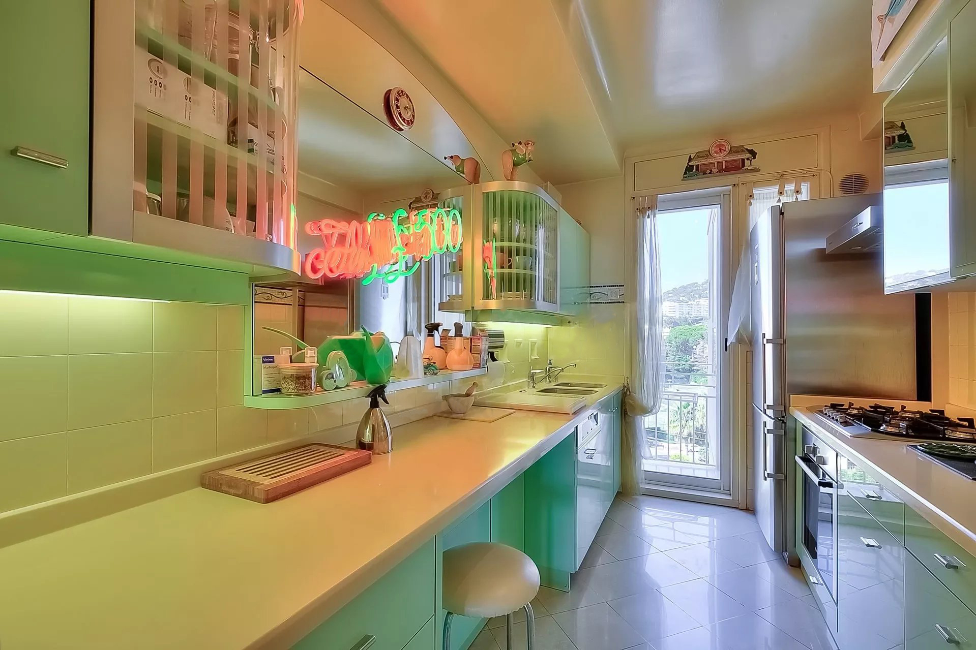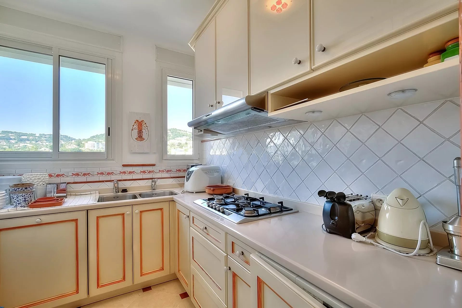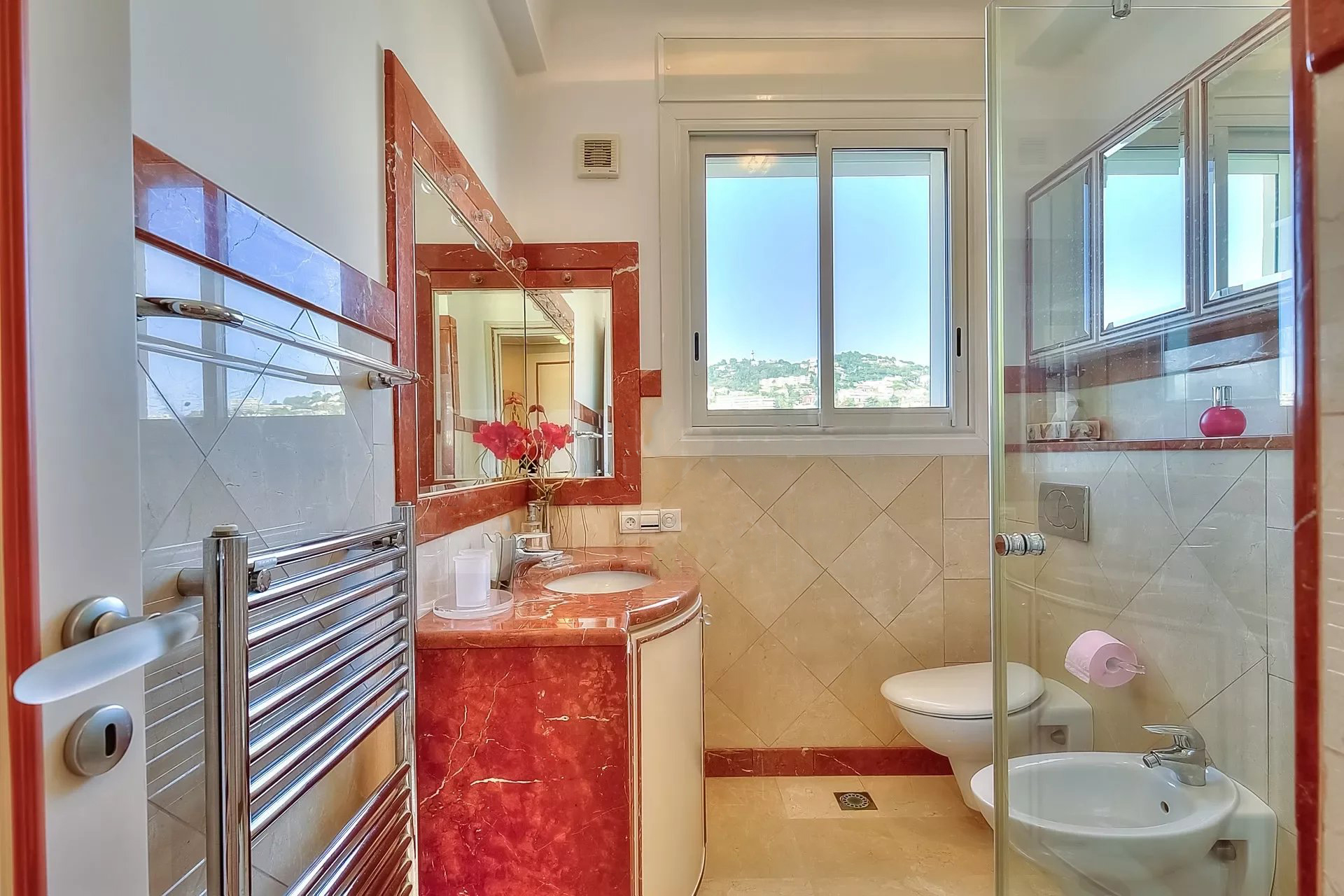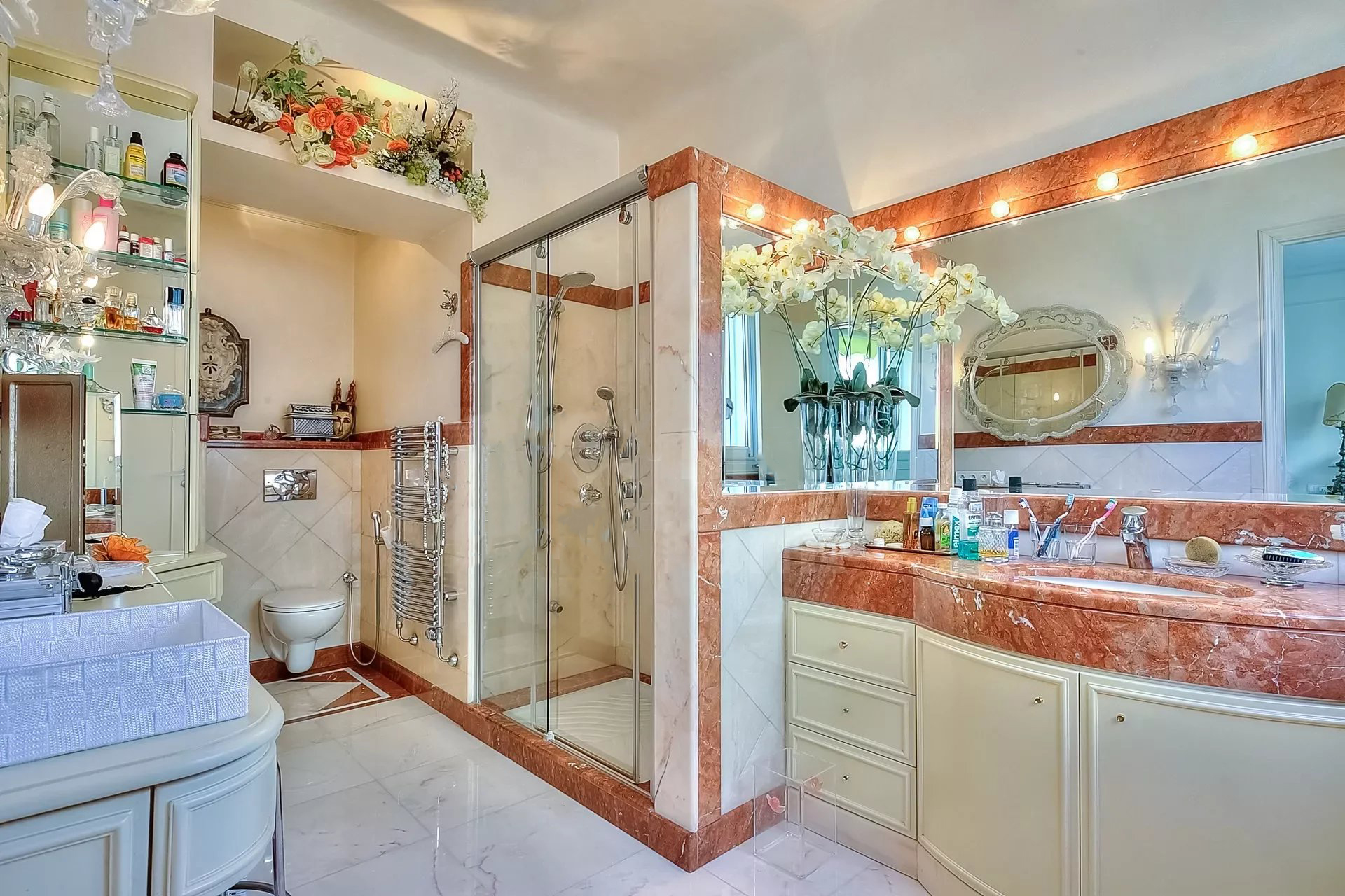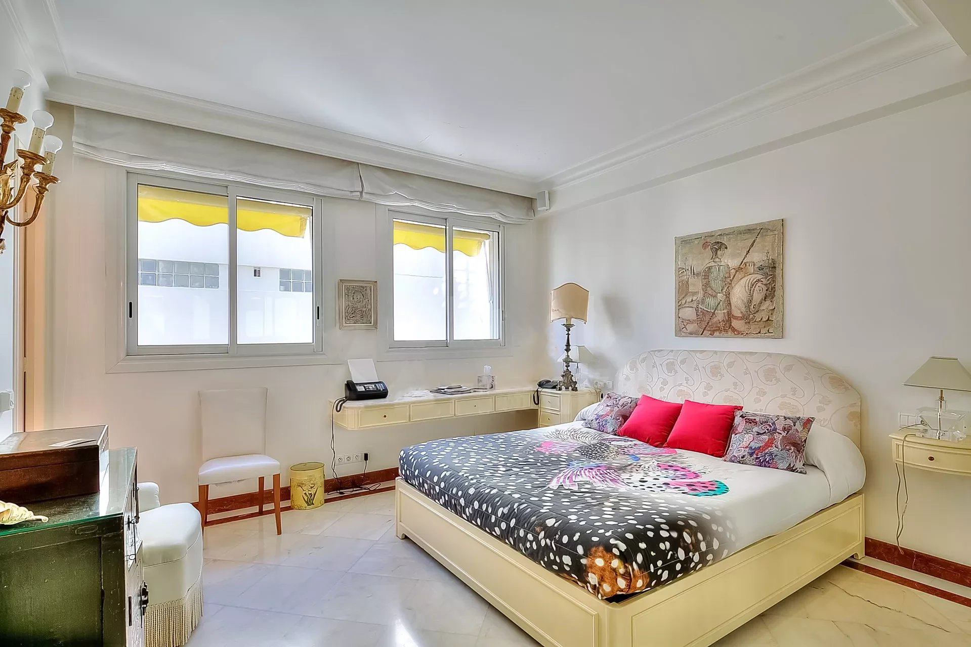 Décoration italienne avec un beau hall d'entrée, grand séjour de 95 m² avec bar ; Le séjour est situé à l'avant et s'ouvre sur une terrasse de 48 m² avec une vue imprenable sur la Baie de Cannes. Cuisine indépendante, 4 chambres, 4 salles de bains. Possibilité de 5ème chambre.