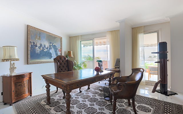 Bel appartement en étage élevé, entièrement rénové avec des matériaux de qualité : marbre blanc, moquette et parquet, situé dans une grande résidence de prestige avec piscine, concierge 24h/24 et vue sur le Jardin Exotique. Environnement calme et verdoyant.