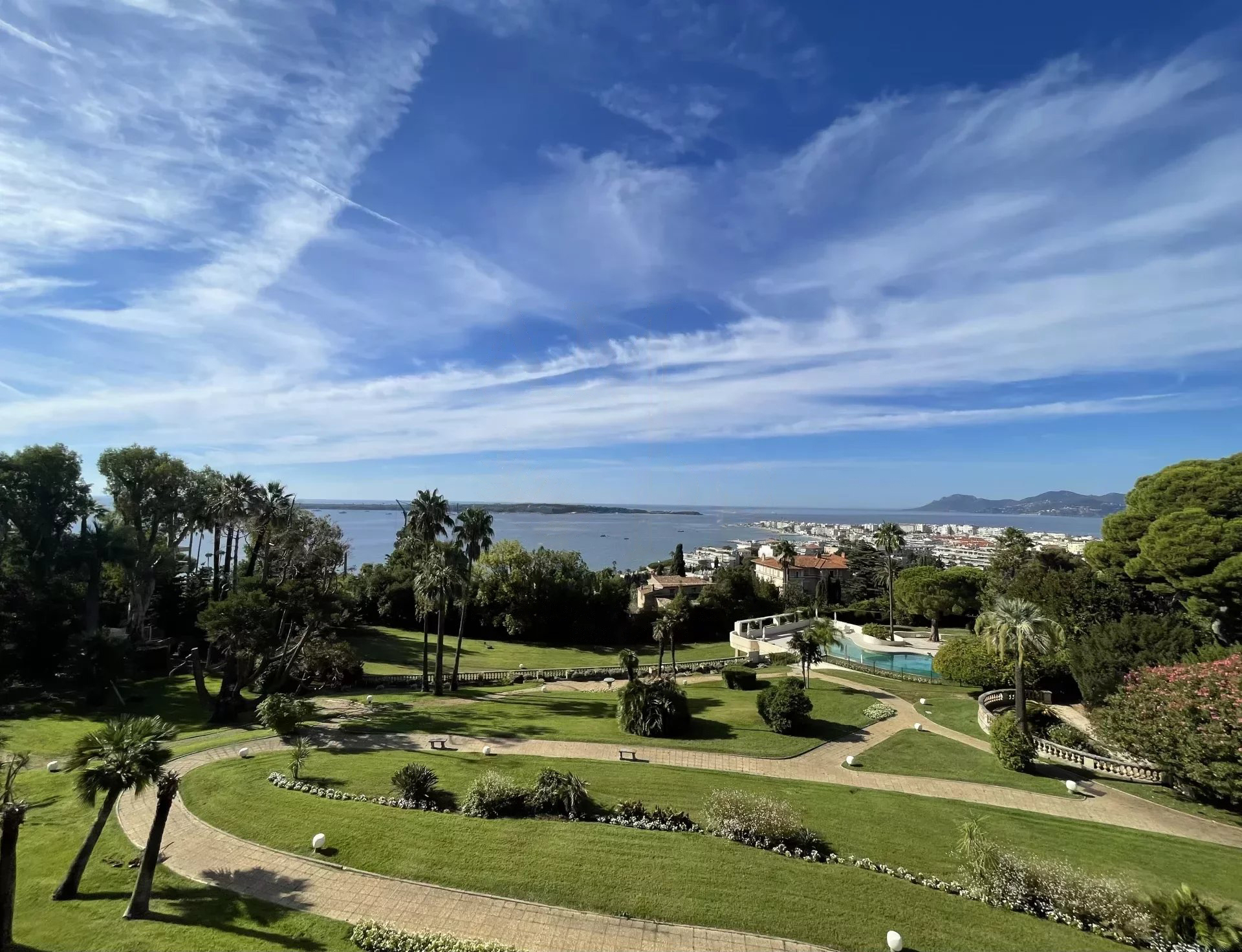 Dans la plus belle résidence de luxe de Californie, gardée, avec concierge, parc et piscine, un appartement d'exception avec toit terrasse de 313 m², offrant de magnifiques vues panoramiques sur la mer, les îles de Lérins et l'Estérel.