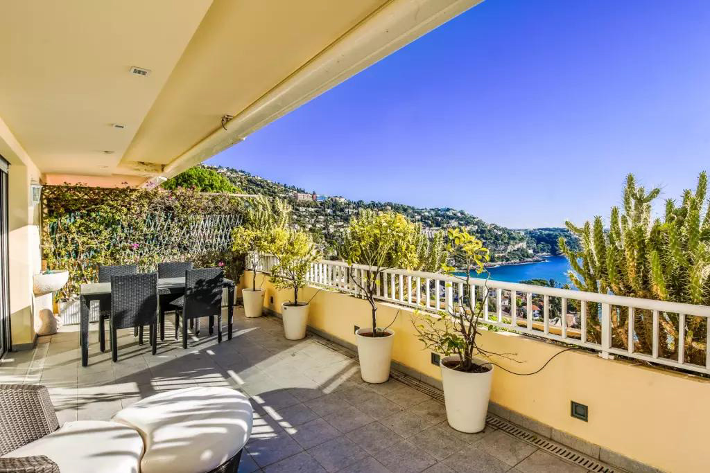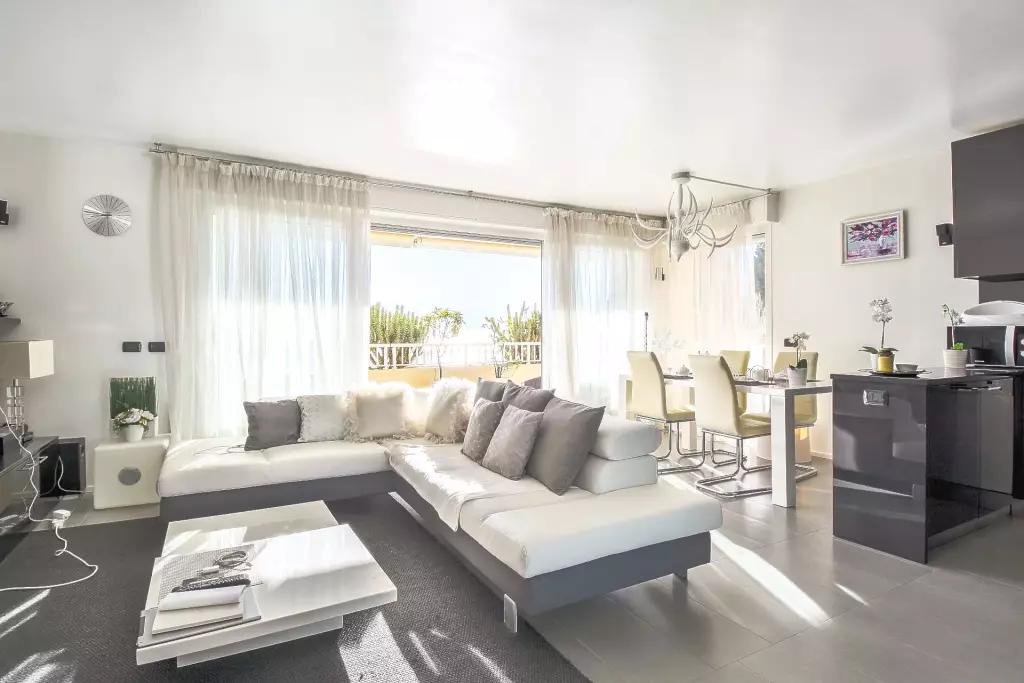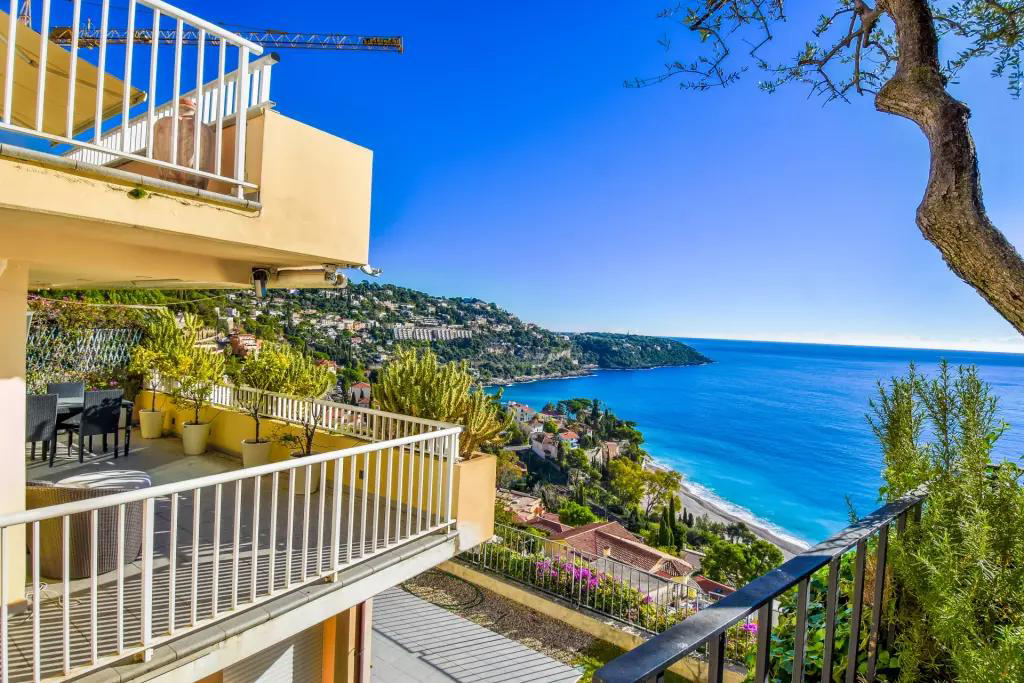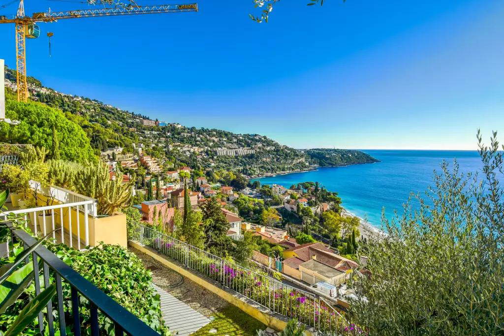 Magnifique appartement en étage élevé avec terrasse spacieuse et jardin privatif, situé directement au dessus des plages, offrant une vue panoramique imprenable sur la mer, le cap et Monaco dans une résidence neuve avec piscine.