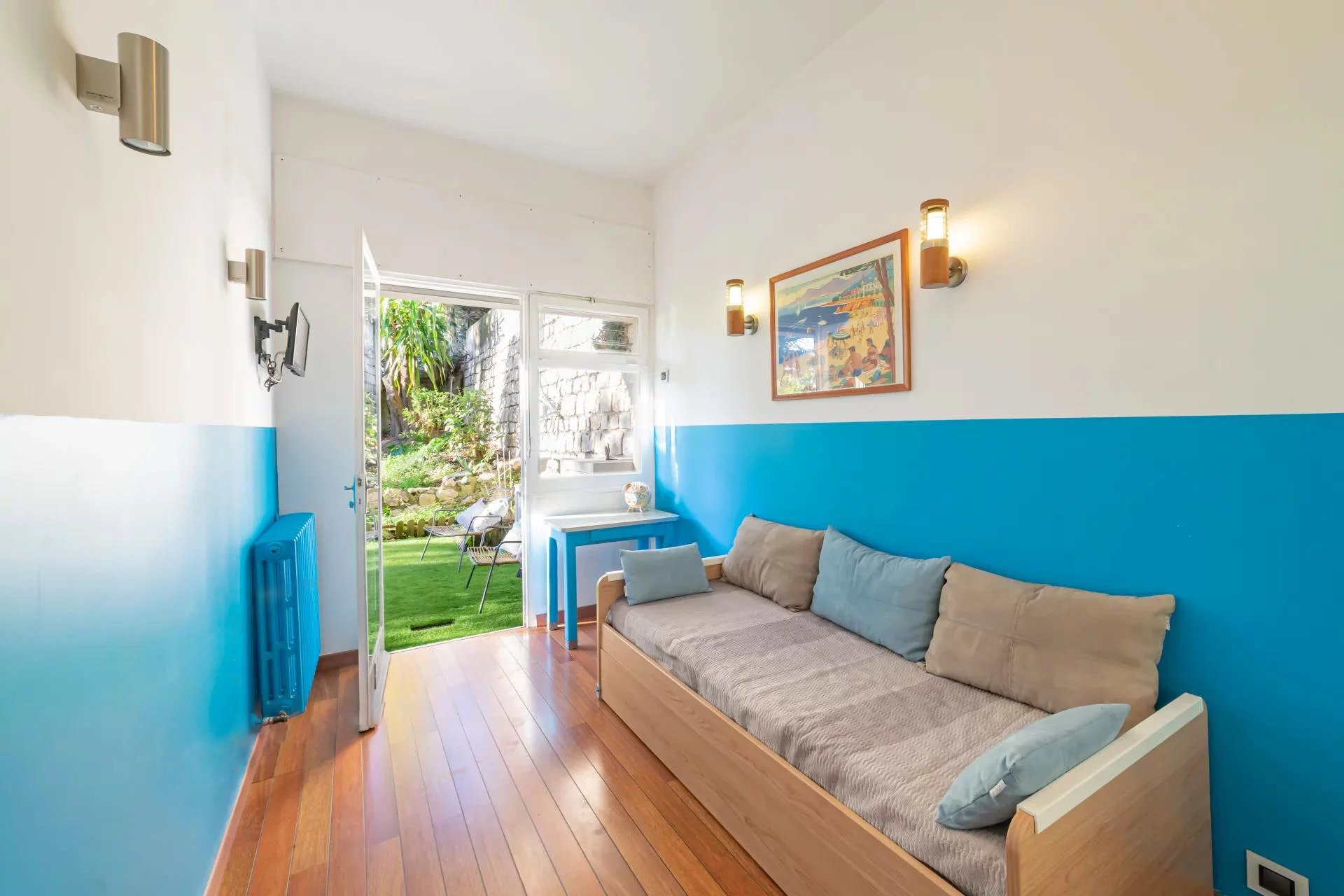 Dans une résidence fermée, cet appartement villa est en excellent état, dispose d'un jardin privatif circulaire et de profondes terrasses (env. 270 m2).