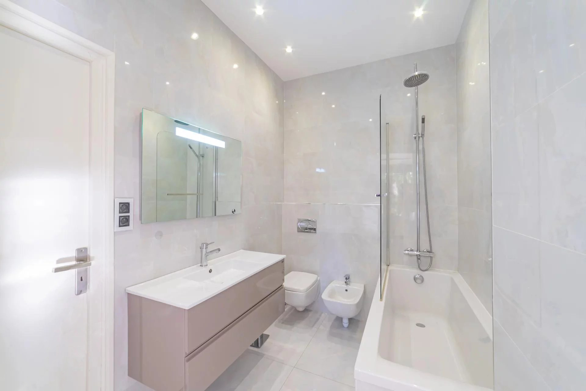 Se compose de : grand séjour avec cuisine moderne intégrée, deux chambres avec salle de bains/WC et salle d'eau, grand dressing intégré.