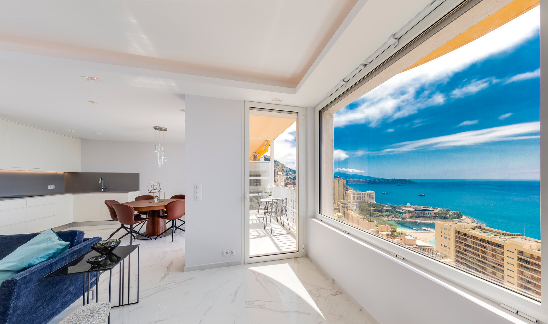 Magnifique 3 pièces de 140m2 entièrement neuf aux finitions luxueuses, sis au 11ème étage d’une des plus belles résidences de la Principauté. Bénéficiant d'une incroyable vue mer panoramique, l’appartement se compose de : - Un hall d’entrée, - Une cuisine équipée ouvrant sur terrasse en façade, - Un séjour / salle à manger - Deux chambres de maître ouvrant sur terrasse avec salle-de-douche, et dressing . - Un toilette invités.