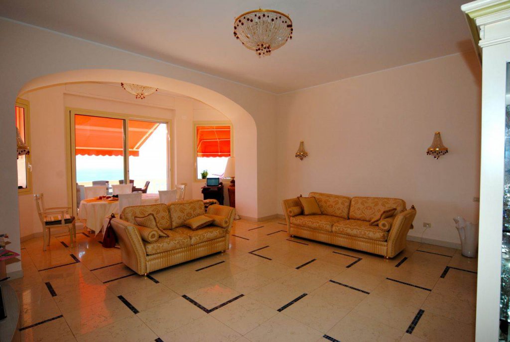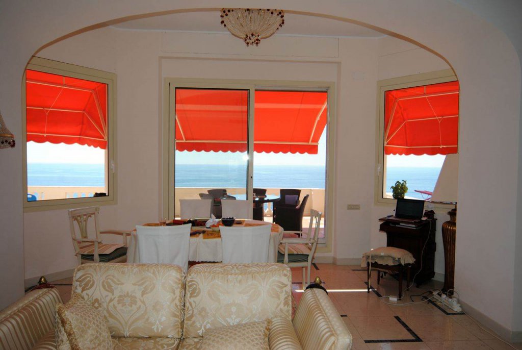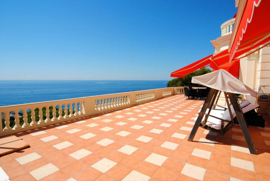 Le salon et les deux chambres ont accès à une grande terrasse d'environ 100 m² avec une exposition sud et des vues panoramiques spectaculaires sur la mer.