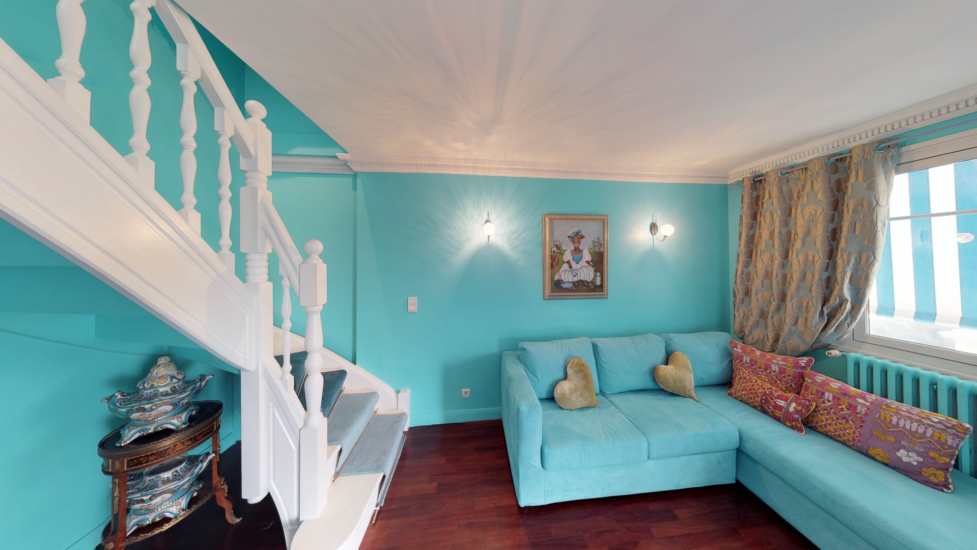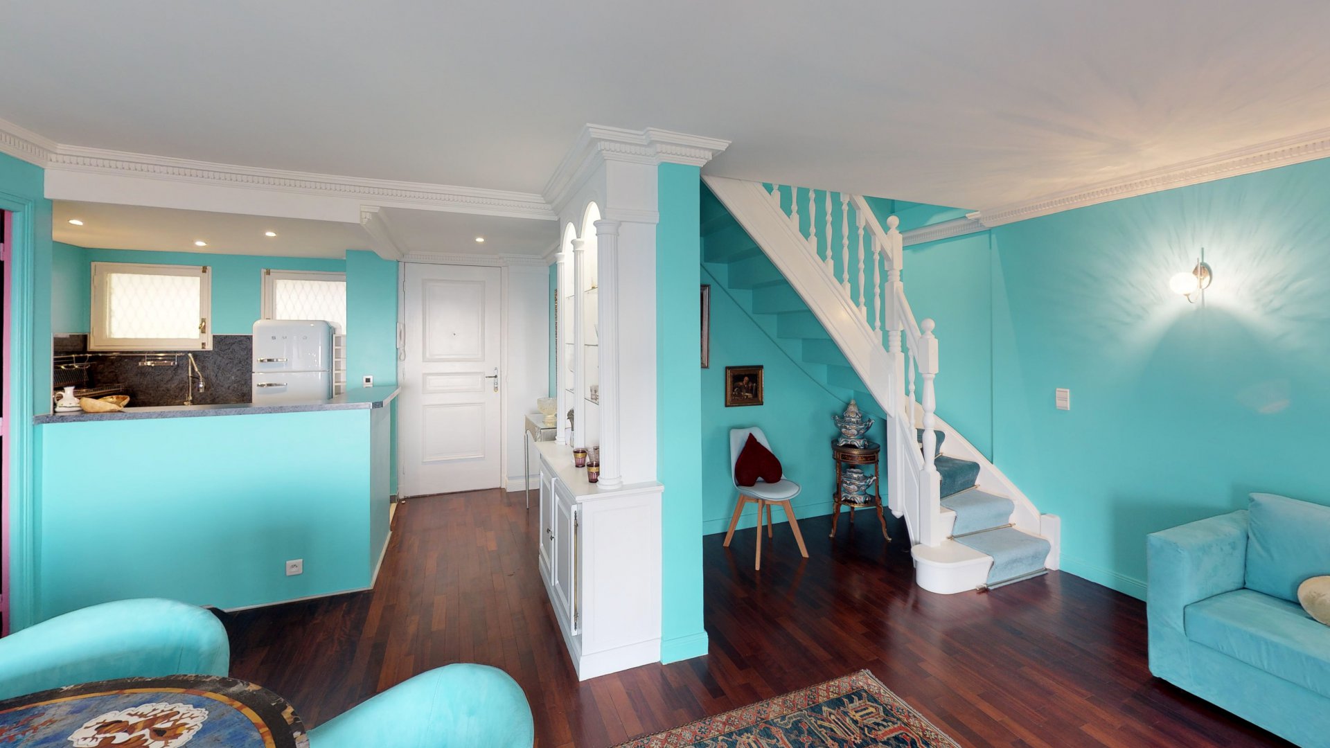 Roquebrune Cap Martin, à deux pas de la frontière monégasque, un bel appartement en duplex entièrement rénové avec des matériaux de qualité, composé d'une entrée salon, salle à manger et kitchenette, une chambre double avec salle de bains, un balcon donnant sur la mer et Tennis de Montecarlo, un escalier menant à l'étage qui s'ouvre sur un salon très lumineux avec grandes baies vitrées, un petit balcon, une cuisine américaine, une salle de bain avec douche et une chambre.