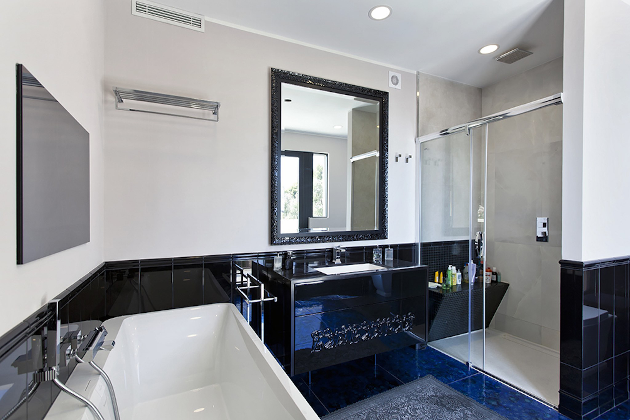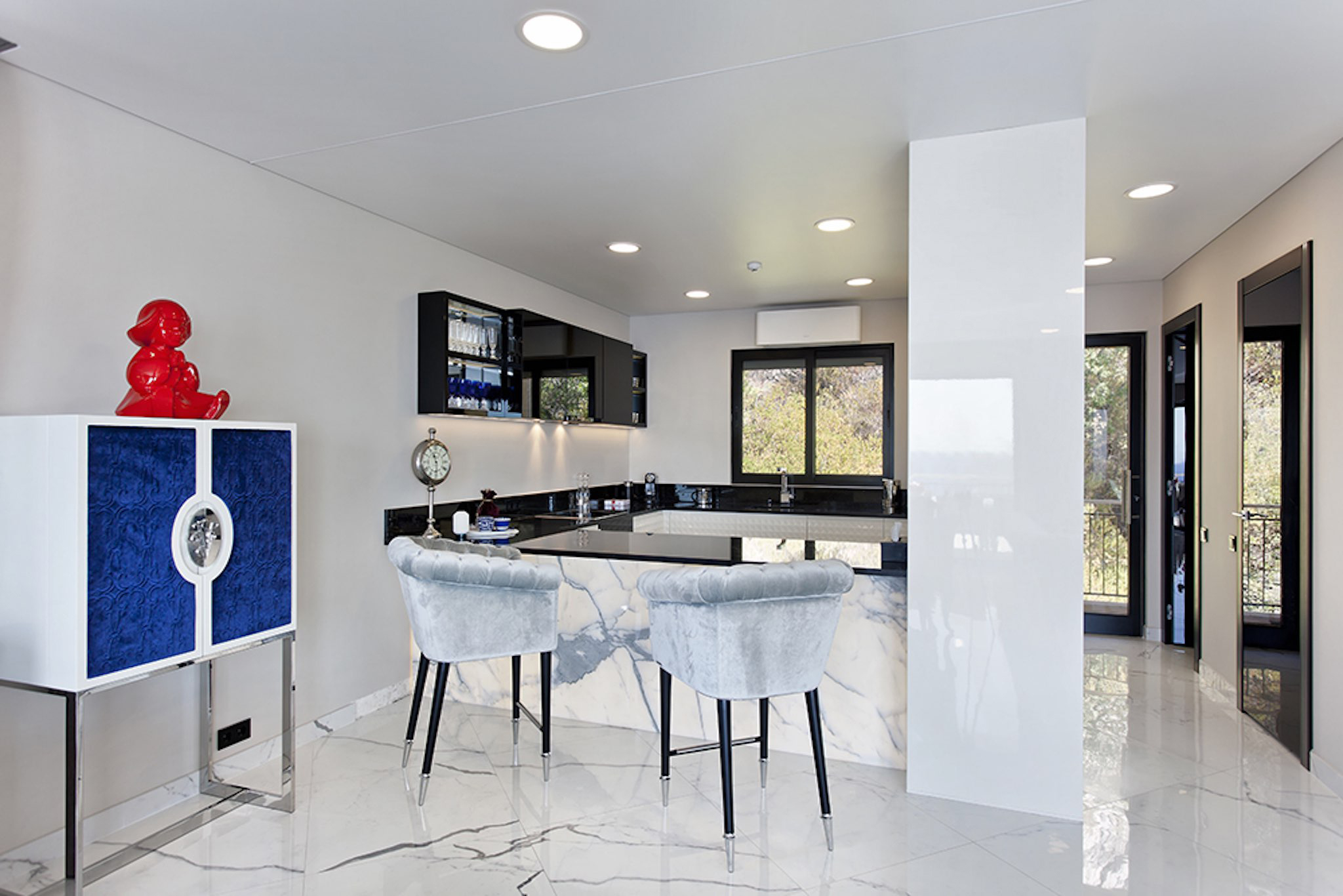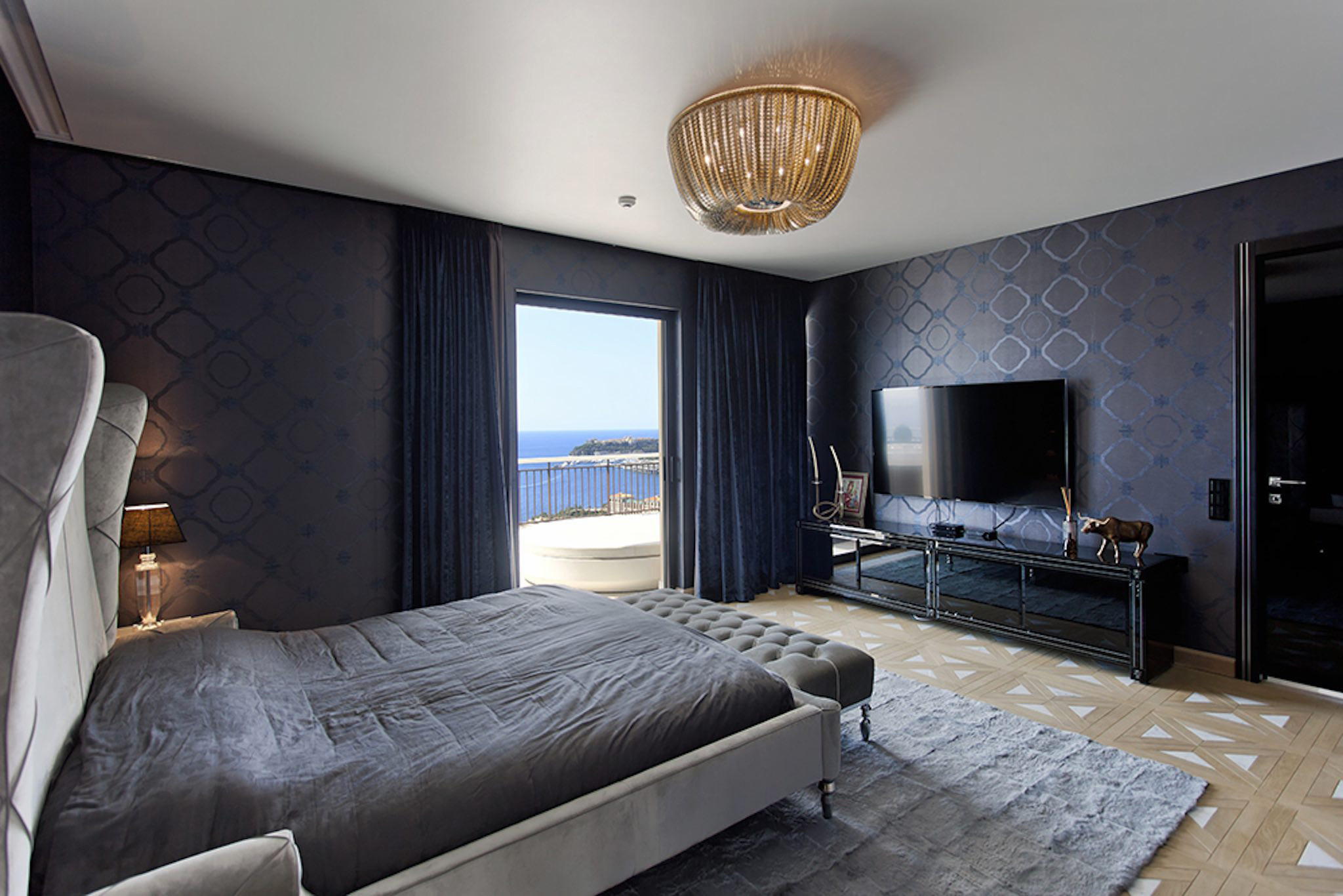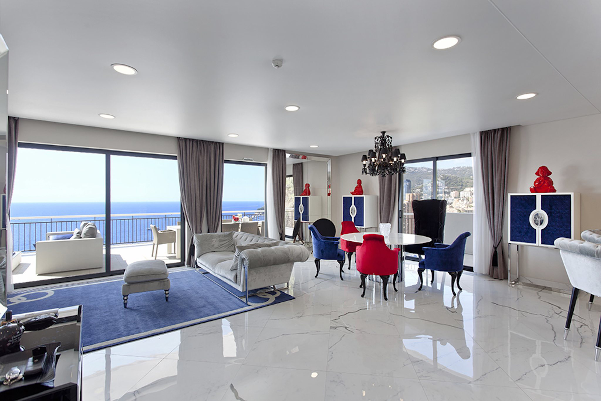 Appartement de 141 m² avec vue mer: entrée, salle à manger-salon, cuisine, buanderie, toilettes invités, bureau, 1 chambre avec dressing et salle de bains, 1 chambre avec douche. Grande terrasse de 132 m². Cave. Garage.
