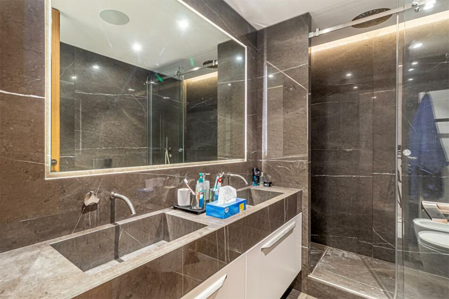 Cet appartement de 4 chambres a été entièrement rénové avec des matériaux de haute qualité et une attention exceptionnelle aux détails.