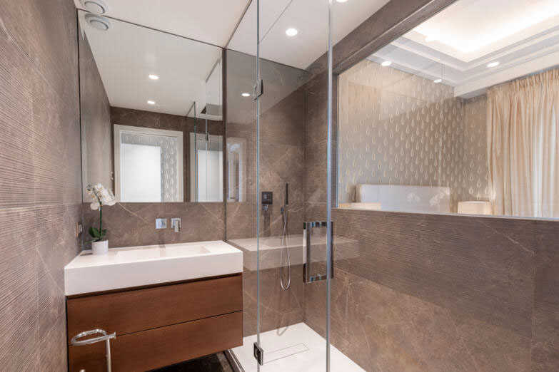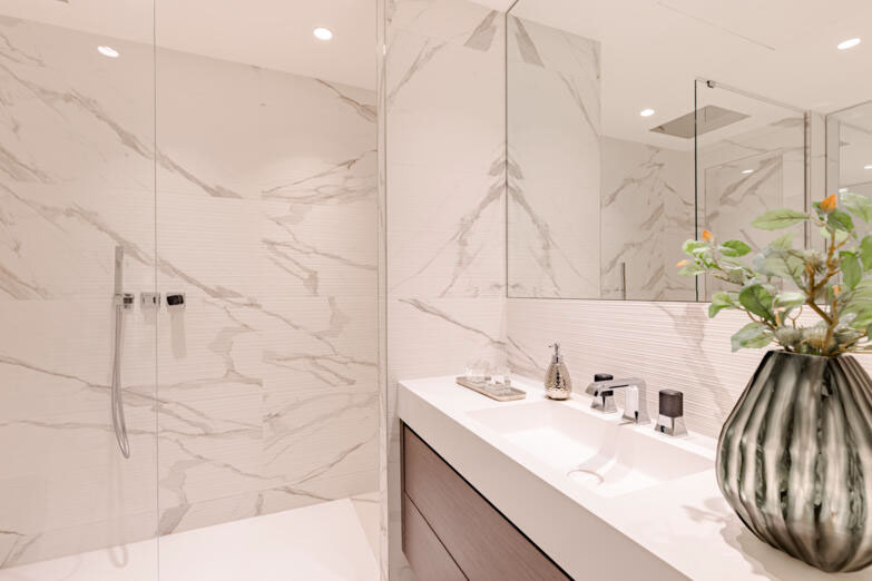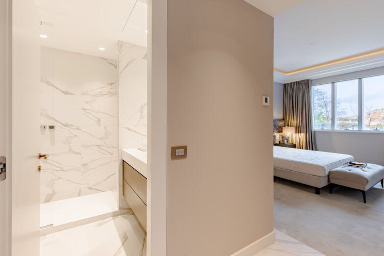 L'appartement dispose de trois grandes chambres, chacune avec son propre dressing pour que les choses restent faciles et organisées, deux salles de bains et des toilettes invités.
