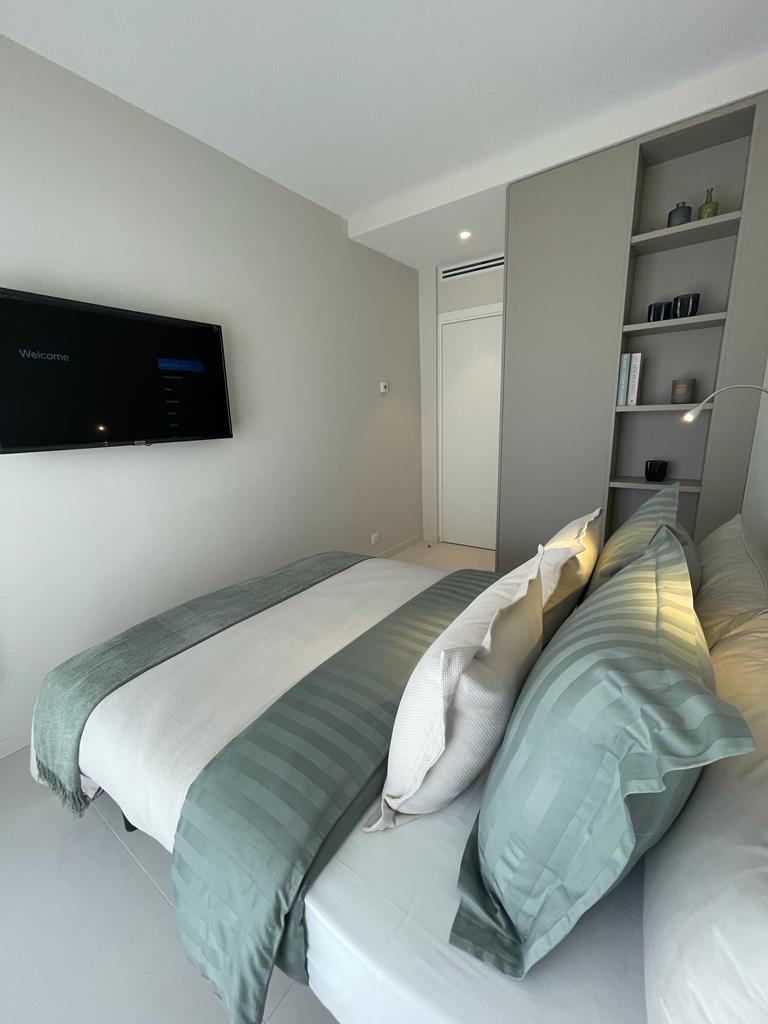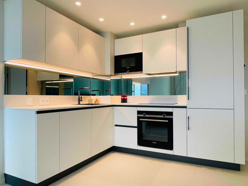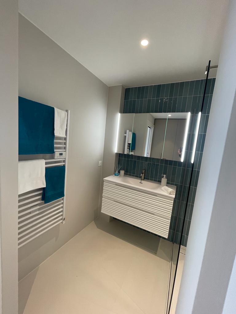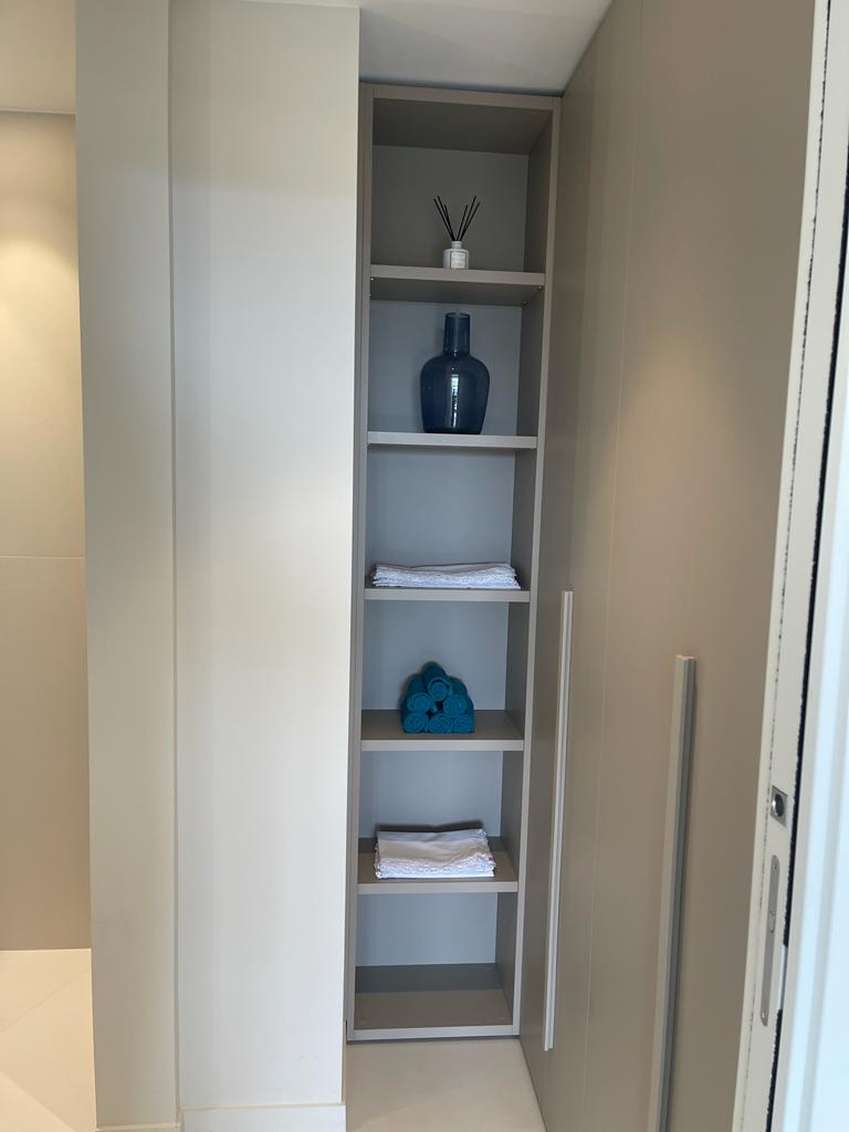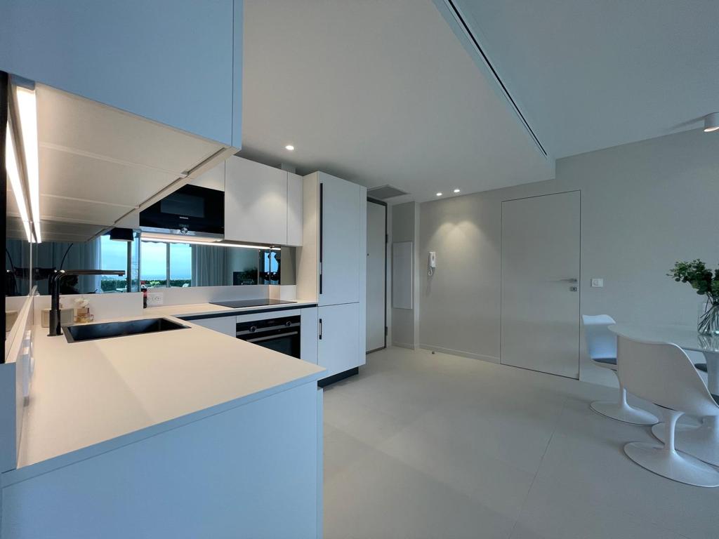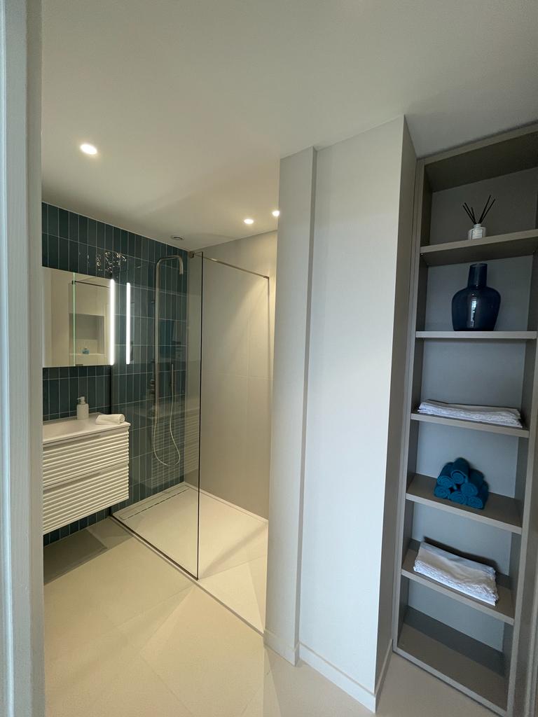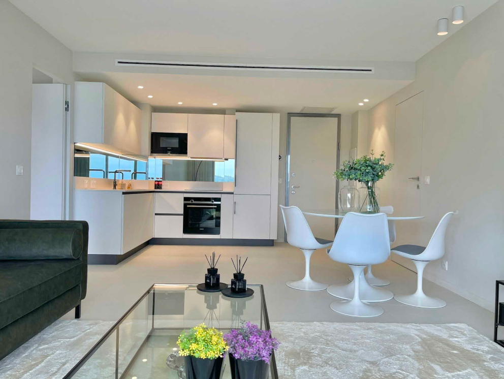 L'appartement luxueusement décoré et meublé se compose d'un hall d'entrée desservant un beau séjour avec une spacieuse terrasse de 28 m2 et une magnifique vue mer panoramique, deux chambres avec chacune sa salle de bain, une cuisine avec loggia, un WC séparé et de nombreux rangements. les espaces.