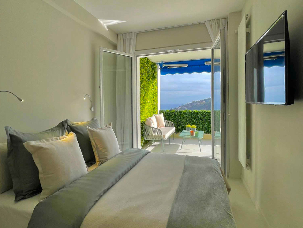 Cet exceptionnel appartement de 3 chambres, entièrement rénové, dans une résidence fermée de standing à Villefranche-sur-Mer.