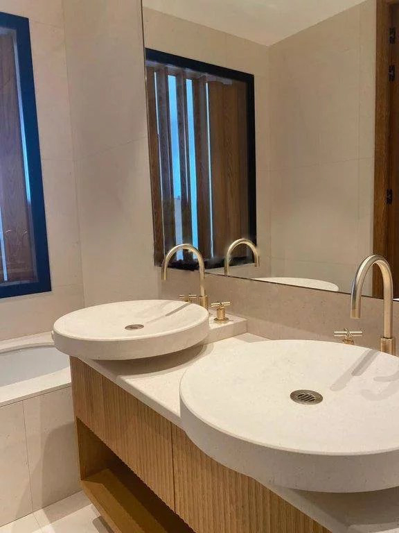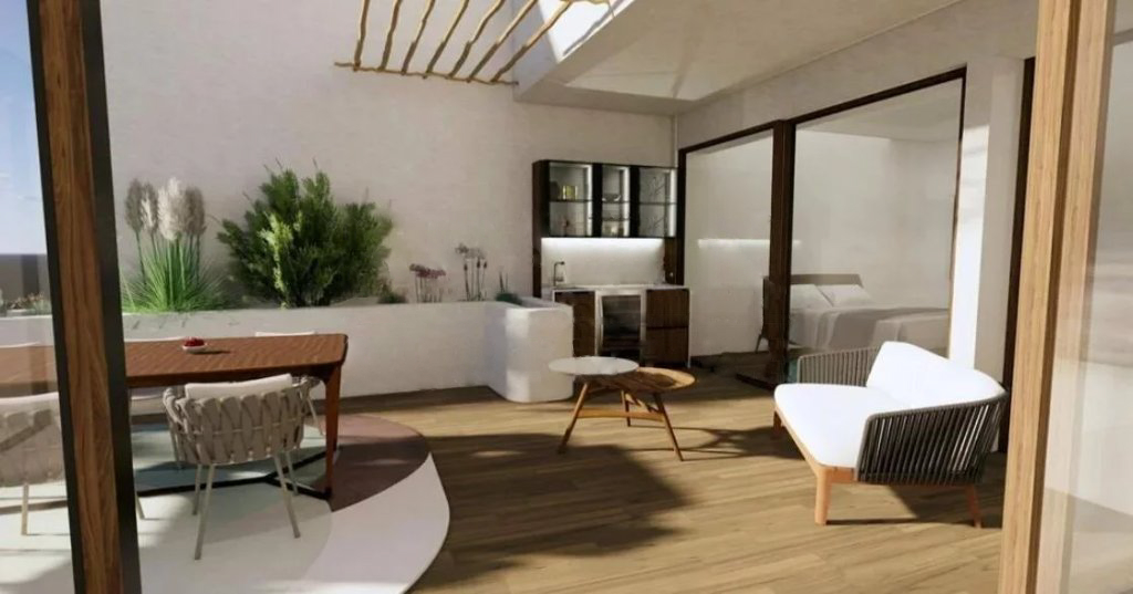 L'appartement a une superficie totale de 210 m². offre 2 chambres avec salles de bains, un bureau avec sa propre salle d'eau. Un hall d'entrée mène à un spacieux séjour avec une cuisine ouverte entièrement équipée et des toilettes invités.