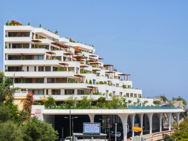 Aux portes de Monaco, ce luxueux immeuble moderne offre des prestations de premier ordre dont une piscine, des jardins et un service de conciergerie.