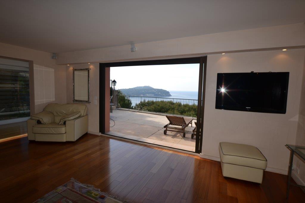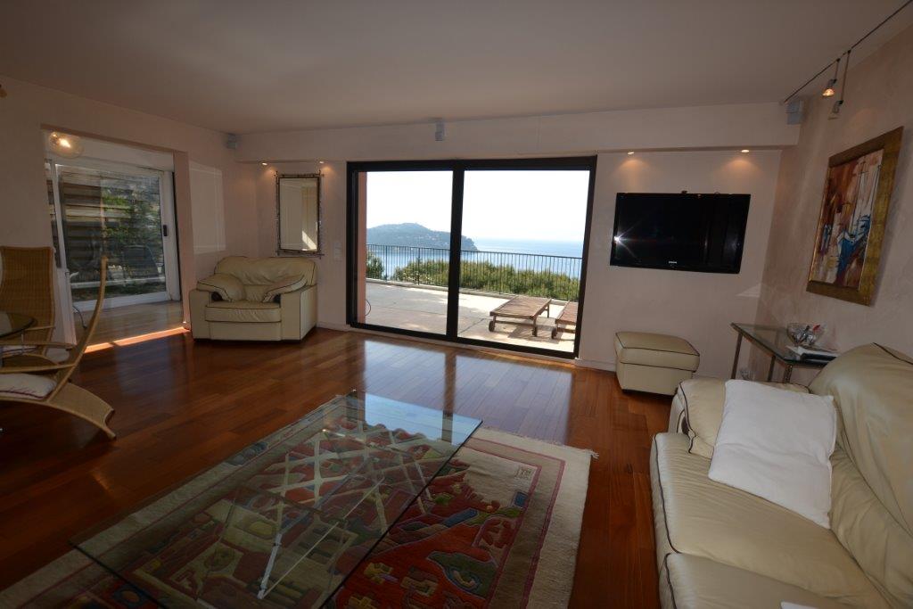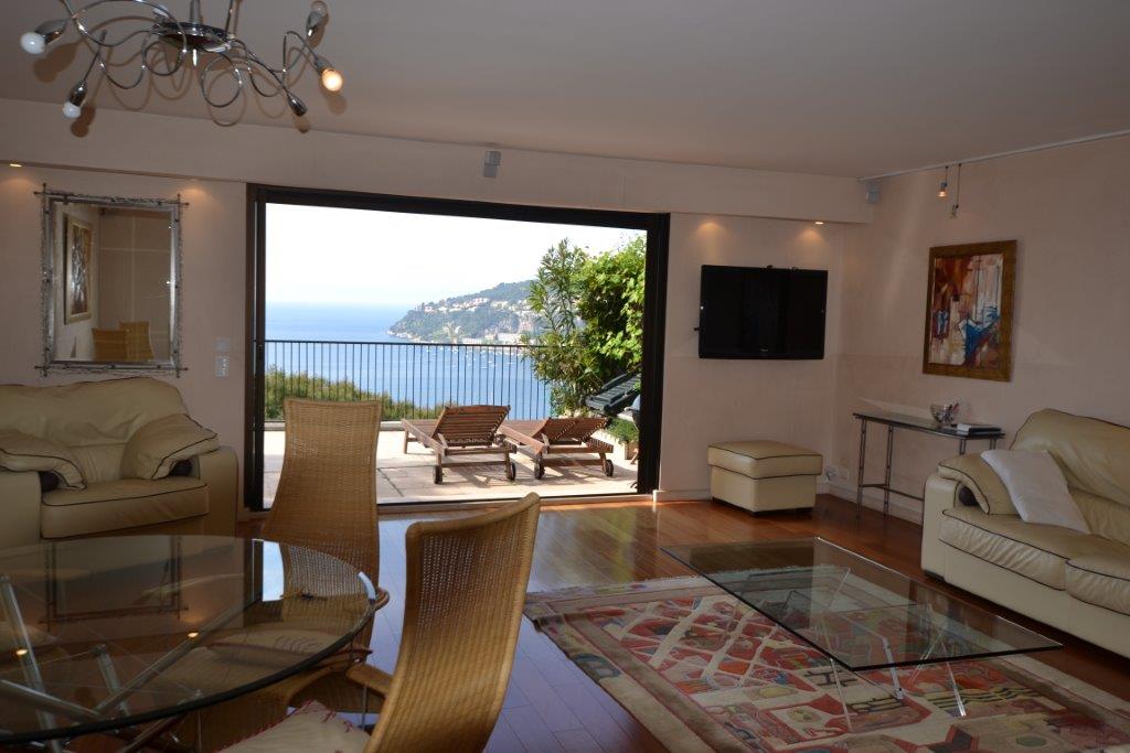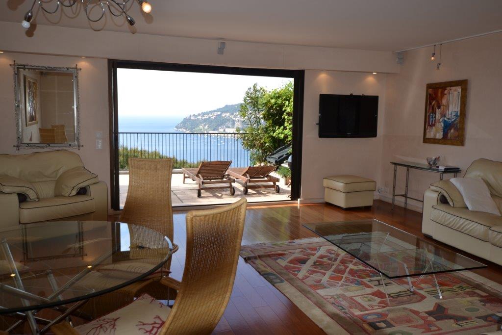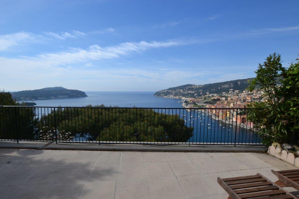 3 chambres, salle de séjour spacieuse avec une terrasse de 60 m2 avec une vue panoramique sur la baie de Villefranche sur Mer.