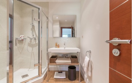 - Deuxième chambre avec salle de stockage (placard), douche et WC.