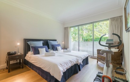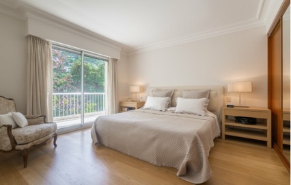 - Chambre de maître avec balcon 7 m² de belles vues sur la végétation, salle de bain avec douche et WC,