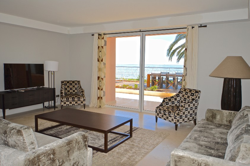 Dans une résidence de grand standing pieds dans l'eau, superbe appartement 3/4 pièces d'env. 140 m2 habitables entièrement rénové avec des prestations luxueuses offrant 100 m2 de terrasse et jardin, une superbe vue mer et une exposition plein Sud. Accès directe à la plage.
