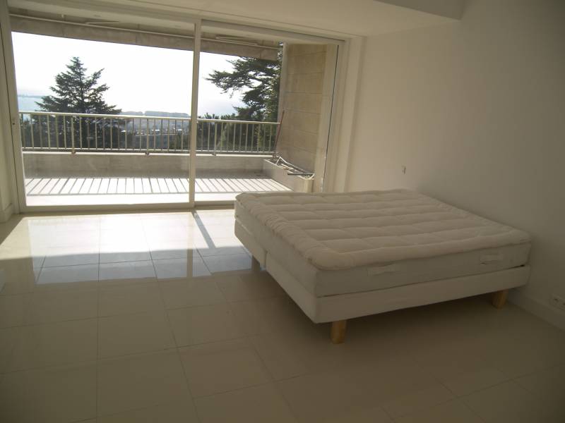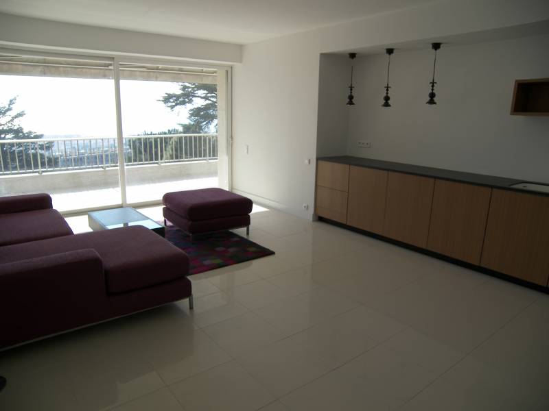 Bel appartement 119 m2 dans résidence fermée avec parc et piscine située au 5ème étage. Grand salon, 2 chambres, 2 salles d'eau, studio indépendant, terrasse de 22 m2 avec vue sur la mer. Garage.