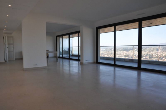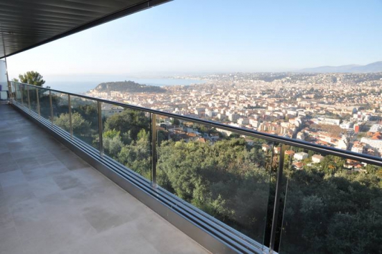 Une vue panoramique sur la mer et la ville. Spacieux appartement de 160 m2 avec 33 m2 de terrasse + 3 balcons. 3 chambres, 3 salles de bain, un salon spacieux, une salle de séjour. Cellier, garage. La résidence se situe : 10 minutes du centre-ville 300 mètres des commerces (supermarché) 20 minutes de l'aéroport