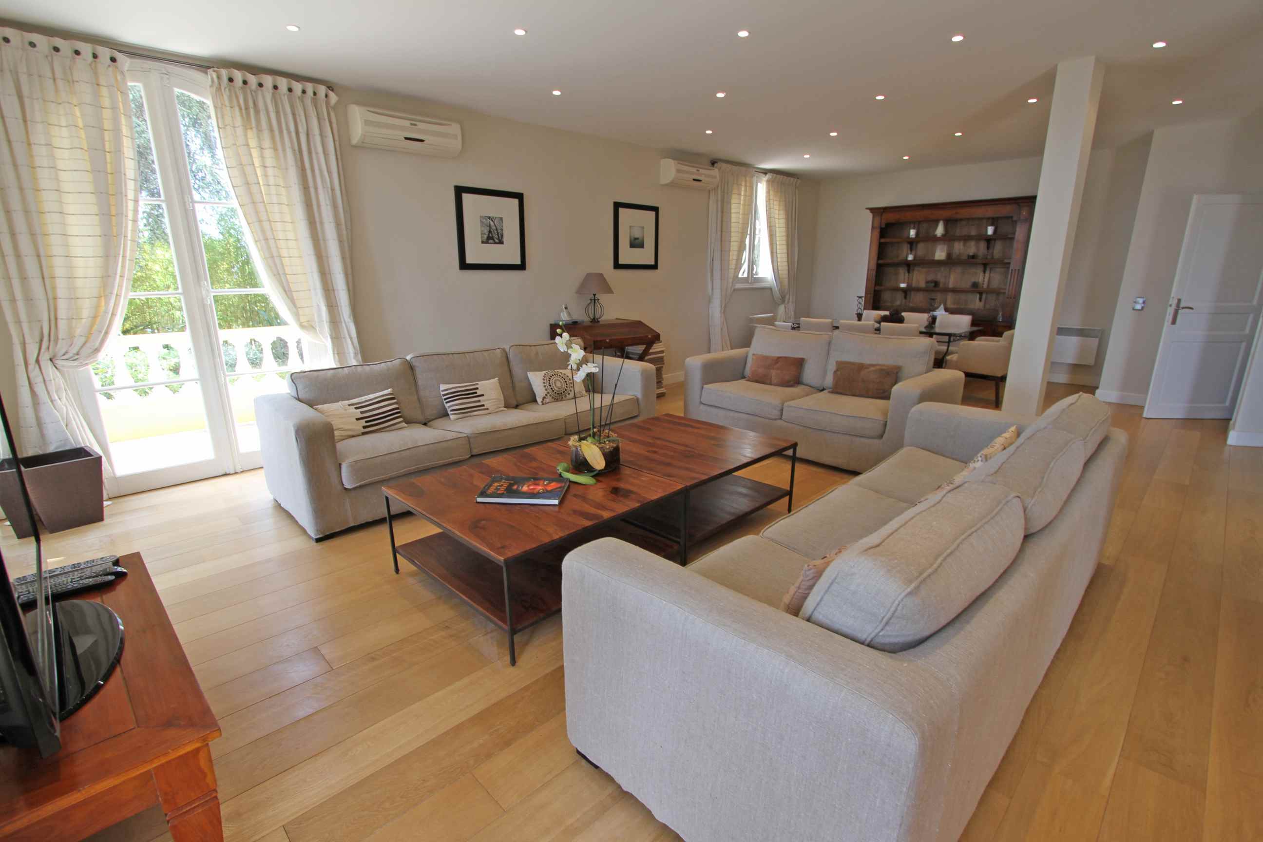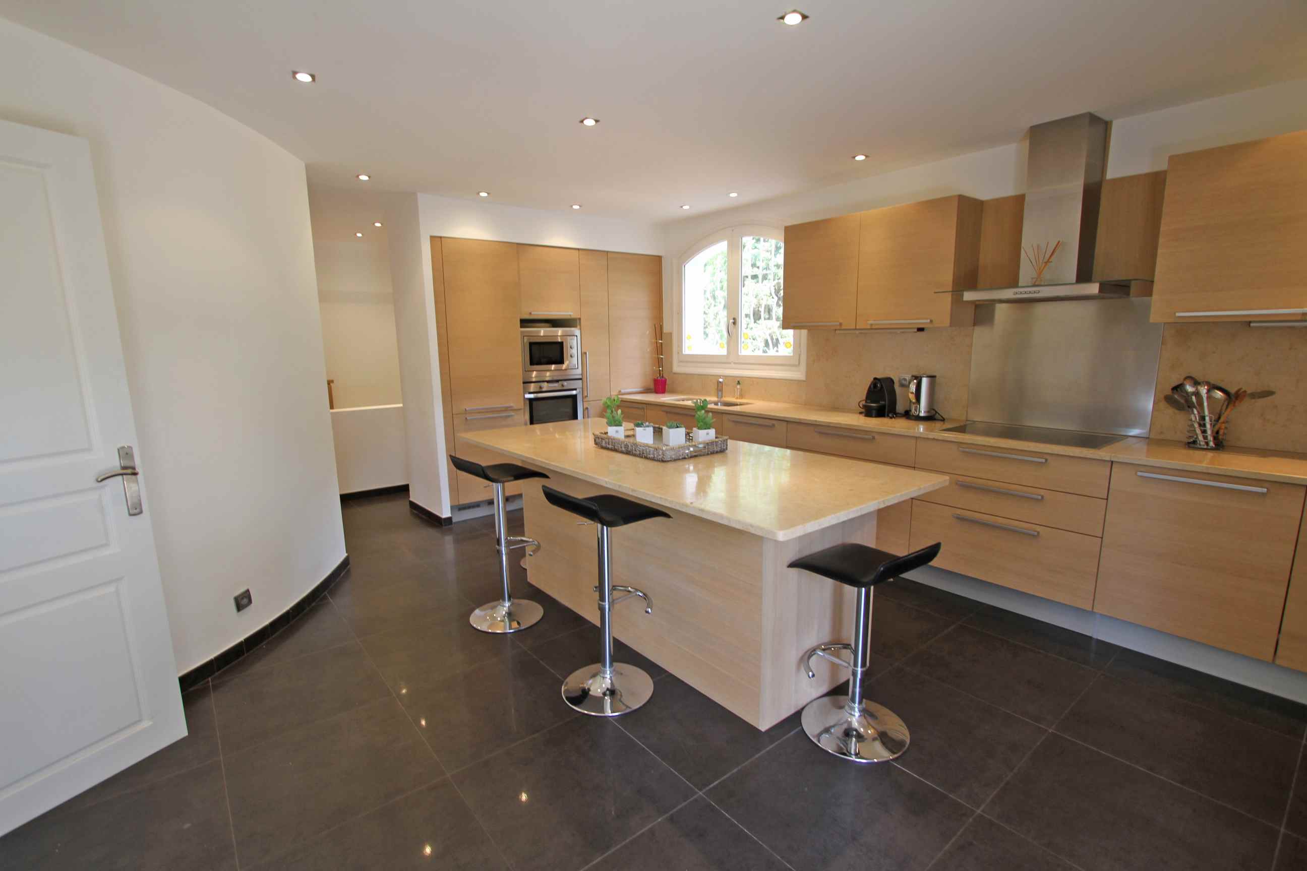 Belle villa de 300 m2, situé dans un village fermée au quart inférieur de la Californie. Vue panoramique sur la mer, le Cap d'Antibes et les îles de Lérins.