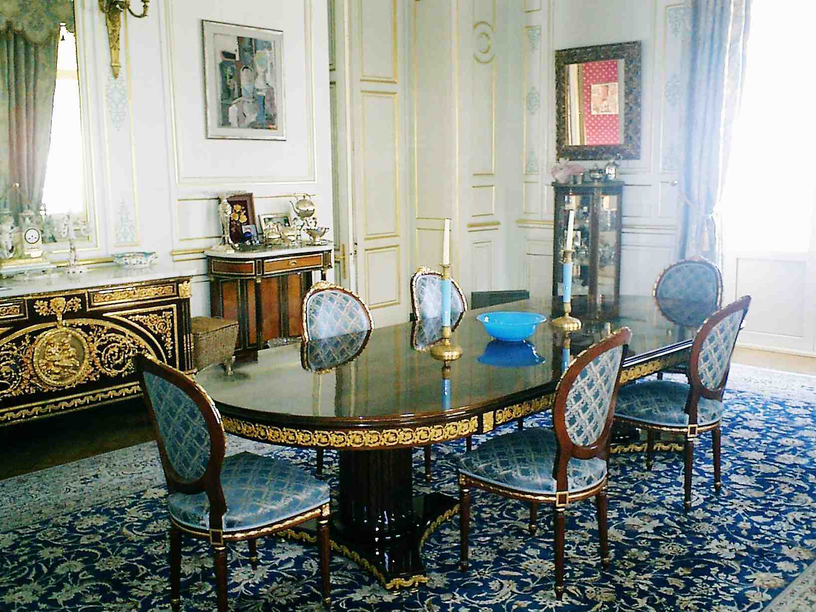 une chambre avec cheminée, boudoir, salle de bains et dressing donnant sur terrasse – balcon, petite cuisine.