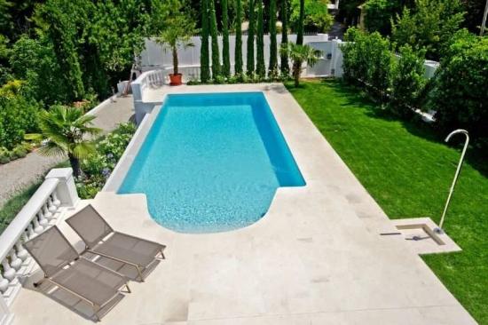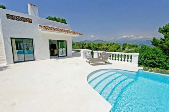Nice (Grande Corniche) - une belle villa dans un style contemporain de 160 m2 situé dans un quartier calme. La villa a été fait une rénovation complète et le nouveau paysage a été réalisé dans le jardin 1470 m2 avec piscine.