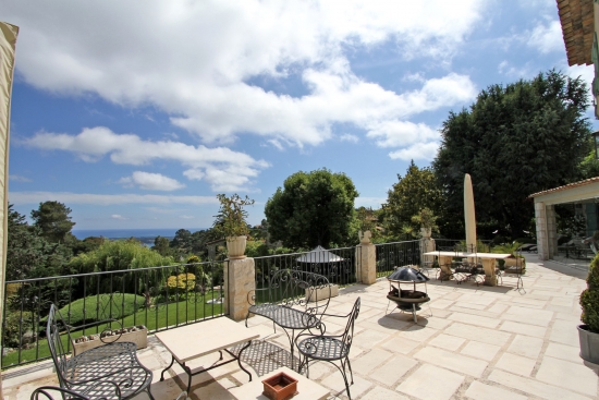 Belle villa provençale avec une vue sur la mer . Villa de 260 m2 est située sur les hauteurs de Cannes , dans le prestigieux quartier de Super Cannes. Magnifique jardin de 3000 m2 avec différentes plantes méditerranéennes.