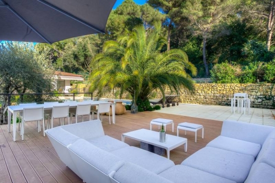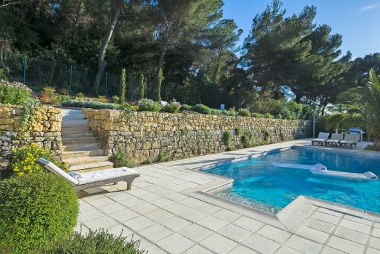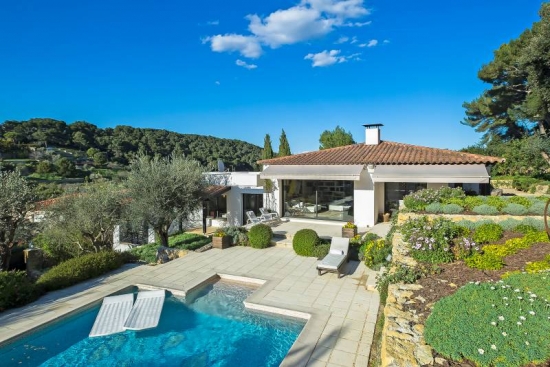Charmante villa provençale de 220 m² est entouré de verdure et est situé sur une colline, dominant toute la ville de Cannes. Villa est en très bon état avec l'intérieur dans un style moderne. Très beau jardin paysagé. Orientation: Ouest