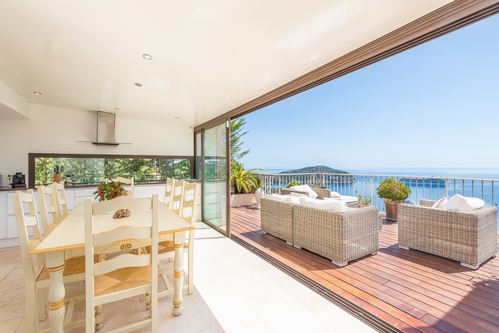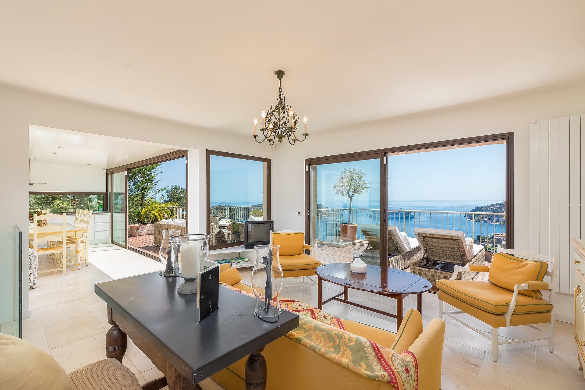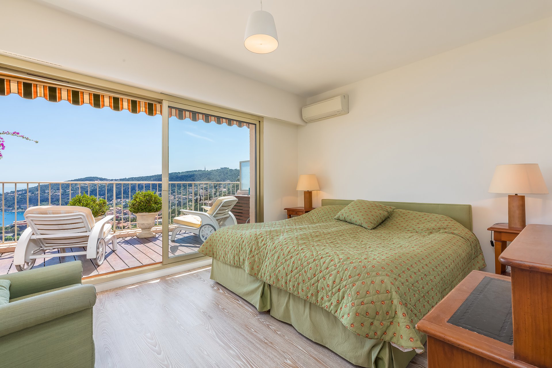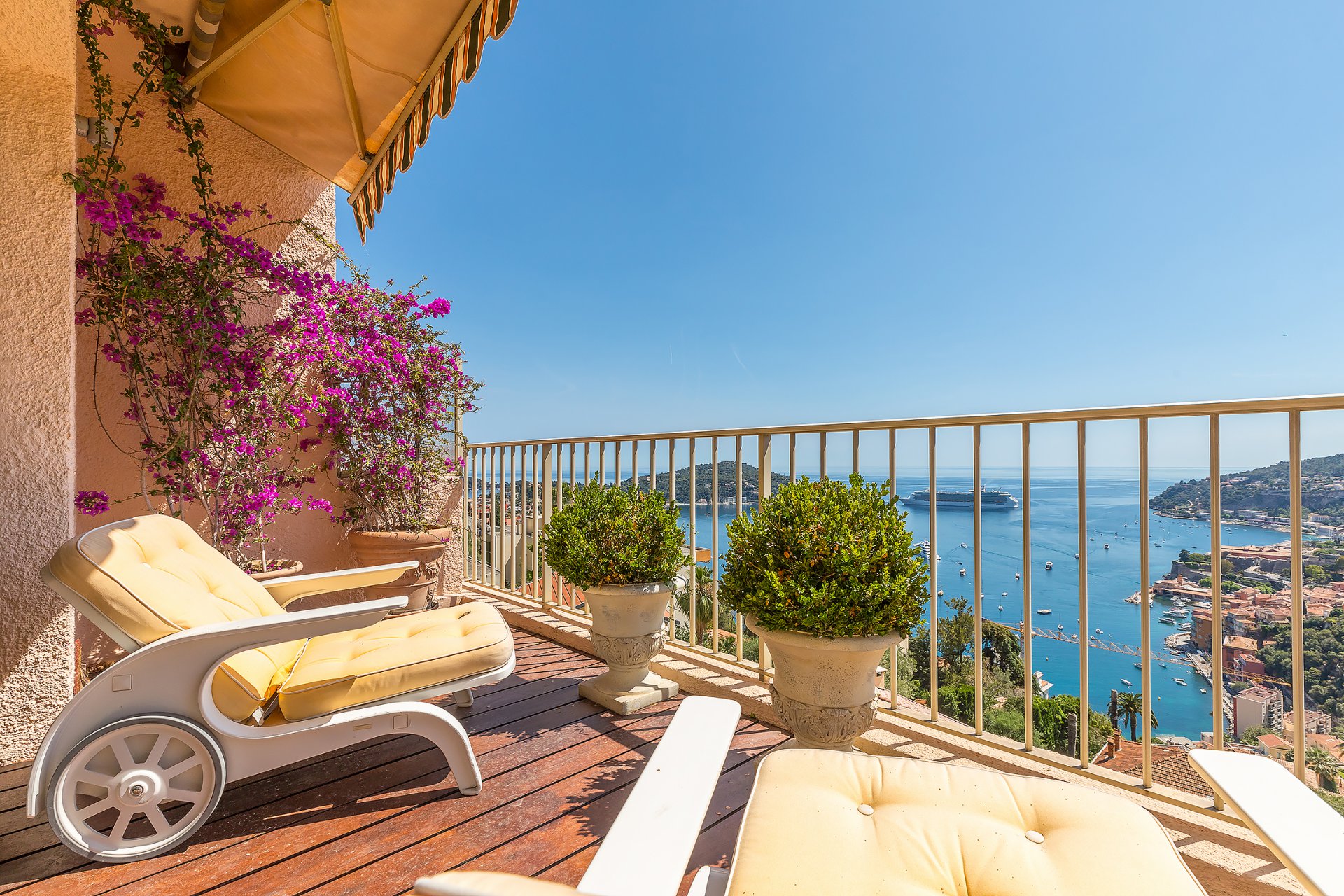 Idéalement situé, appartement de 2 pièces de 93 m² au total, surface de la Carrez 72,9 m², plus 2 terrasses de 8 et 34 m² à chaque niveau, offrant une vue panoramique sur la presqu'île de Saint-Jean-Cap-Ferrat et la baie de Villefranche-sur-Mer. Ce duplex comprend un salon spacieux et une cuisine ouvrant sur une grande terrasse, et deux chambres avec salle de bain ou salle de douche au niveau inférieur. Climatisation, alarme, garage privé pour une voiture et cave. Piscine et gardien dans la résidence.