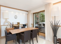 Salon avec accès à la terrasse, cuisine indépendante, trois chambres avec salles de bains, salle du personnel avec douche.