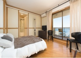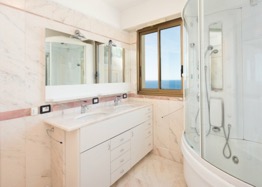 L'appartement dispose de quatre chambres spacieuses et élégantes. Une immense terrasse (200 m2) avec vue panoramique sur la mer.