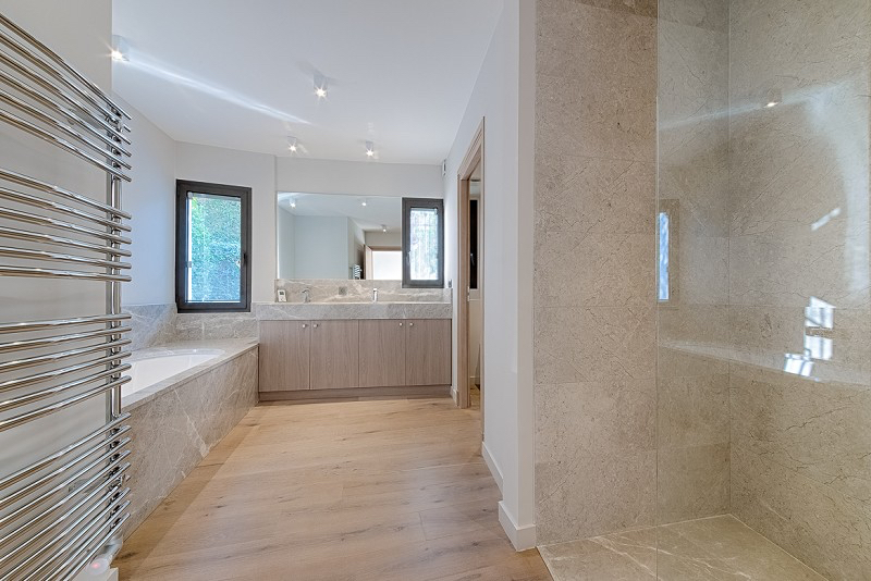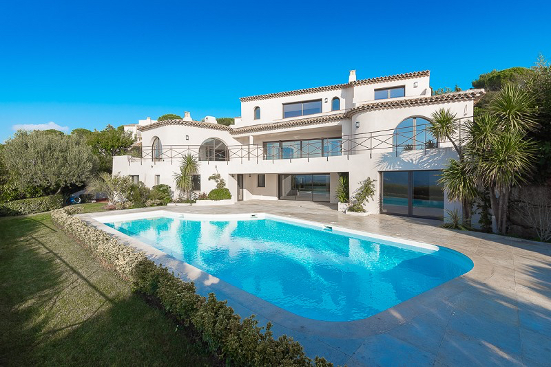 Au sein d’un domaine privé avec gardien et tennis, magnifique villa alliant le charme de l’architecture provençale au confort des prestations modernes. Au calme absolu, la villa dispose d’une superbe vue panoramique jusqu’au massif de l’Esterel. 5 chambres. Superficie : 400 m2. Terrain : 1 300 m2. La villa est composée de : Entrée : Hall d’entrée, séjour, salle à manger, cuisine entièrement équipée, une suite de maître avec salle de bain complète et dressing. Etage : 2 chambres en suite, chacune donnant sur une terrasse. Rez-de-piscine : Salon d’été avec cuisine et cave à vin. Une seconde suite de maître avec salle de bain complète et dressing. Une chambre avec salle de douche, l’ensemble donnant sur une large terrasse couverte. Garage fermé 4 voitures.
